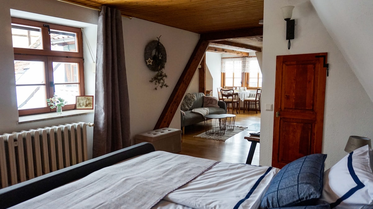 ¡Bienvenido! El apartamento «Viaje en el tiempo» se encuentra en el borde del casco antiguo y es de fácil acceso, (a 3 minutos de la autopista) y a dos calles (en aprox. 5 minutos) ya está en la histórica plaza del mercado. Puede aparcar de forma gratuita directamente en la calle y vivir cómodamente en un apartamento de 50 m² con balcón. El apartamento fue completamente renovado en 2018, con especial atención a un diseño ecológico sin cargas. Estaré encantado de responder a sus preguntas con antelación.