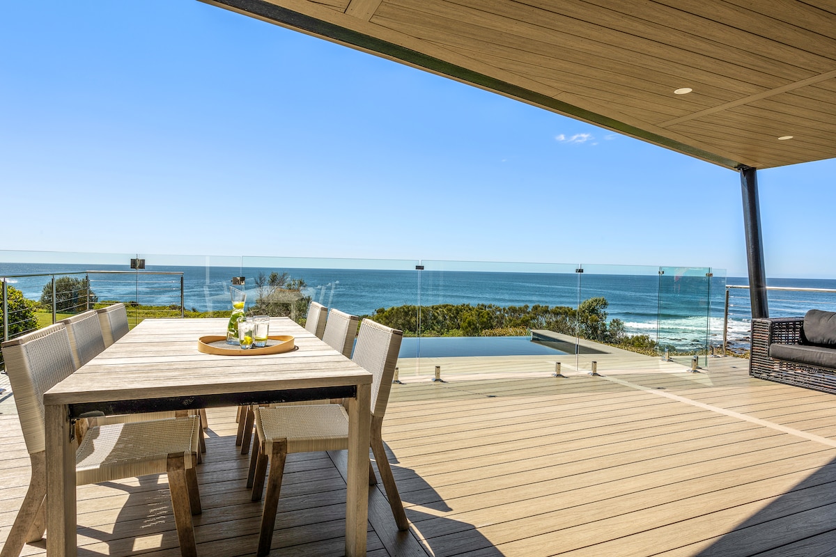 Ubicado en la impresionante escarpa costera de Kiama, este refugio privado con vista al mar ofrece romance, serenidad y avistamiento de ballenas en primera fila desde la terraza de la piscina. A pocos pasos del icónico Blowhole de Kiama, cafés y paseos por la costa, es la escapada ideal para parejas que buscan comodidad de lujo y vistas impresionantes al agua.