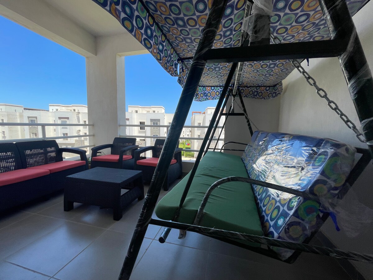 Disfruta de tu estancia en la urbanización de la costa norte de Marassi, Egipto. Una experiencia de lujo en este céntrico alojamiento. El apartamento está a poca distancia a pie del puerto deportivo y de la playa de Safi. Deja tu coche atrás y disfruta del día y de la vida nocturna de la costa norte de Marassi. El espacio puede alojar hasta 4 personas. Las familias son bienvenidas. Disfruta de la playa de 8 km con varias actividades de deportes acuáticos para tu disfrute y el de tu familia. La vida nocturna de Marassi está llena de clubes y eventos.