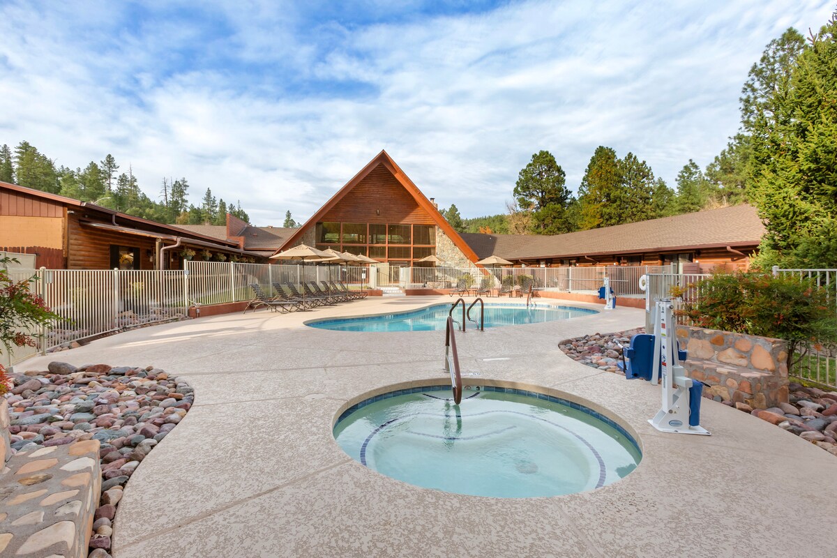 Tucked away in the forest yet close to outdoor recreation, this property is the perfect base for your Arizona adventure. Family-friendly amenities include a game room, sports courts, mini golf, and scenic walking trails, offering both relaxation and activity. Guests enjoy free parking, Wi-Fi, and an on-site restaurant, plus easy access to nature, making it a stress-free and memorable getaway.