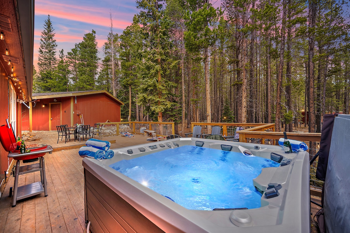 ¡LEE LAS RESEÑAS! ESTA ES UNA EXPERIENCIA ÚNICA, no solo una cabaña. Este refugio privado es todo tuyo, situado en 40 acres aislados rodeados por el Bosque Nacional Arapaho con todas las comodidades de 5 estrellas que puedas imaginar, incluyendo lujosas batas, sábanas, toallas y ropa de cama. Relájate en tu propio pabellón de spa privado con jacuzzi, sauna seca, sala de vapor, zona de entrenamiento, baño, salón, chimenea, TV, espectáculo de láser con servicios de masaje disponibles. ¡Disfruta de esta experiencia de 5 estrellas verdaderamente increíble!