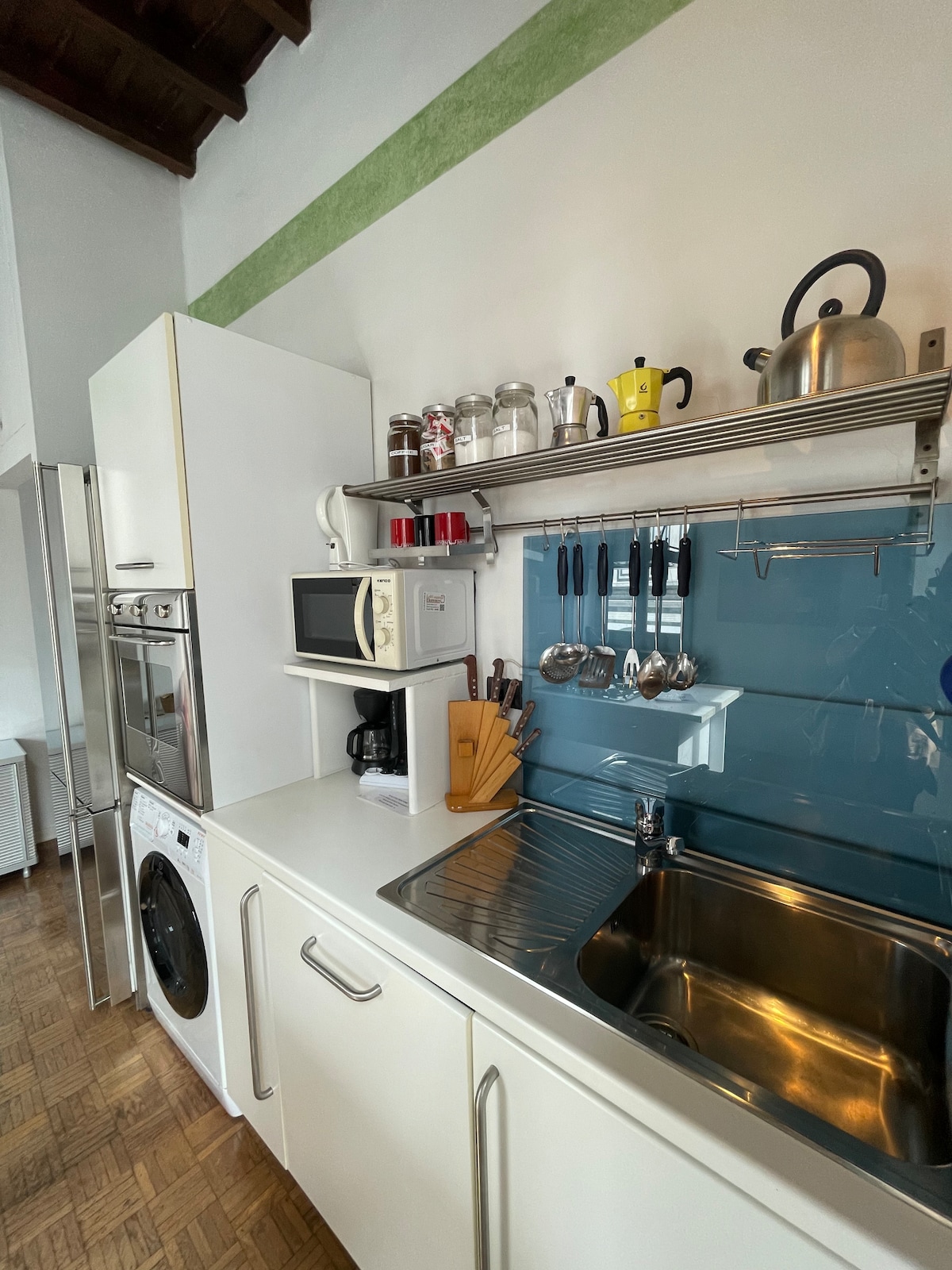 Una vez que entras, la primera sensación es “WOW”. Amplias salas de estar y comedores con sofá y una gran mesa de comedor. Cocina totalmente equipada. Dos dormitorios grandes con una vista increíble al monumento más famoso de Florencia. Las ventanas son grandes y el apartamento es luminoso y elegante, con suelos de madera e insonorización. Gran televisor inteligente para disfrutar. Lavavajillas, lavadora, horno, tostadora, microondas, nevera y congelador disponibles en el apartamento.