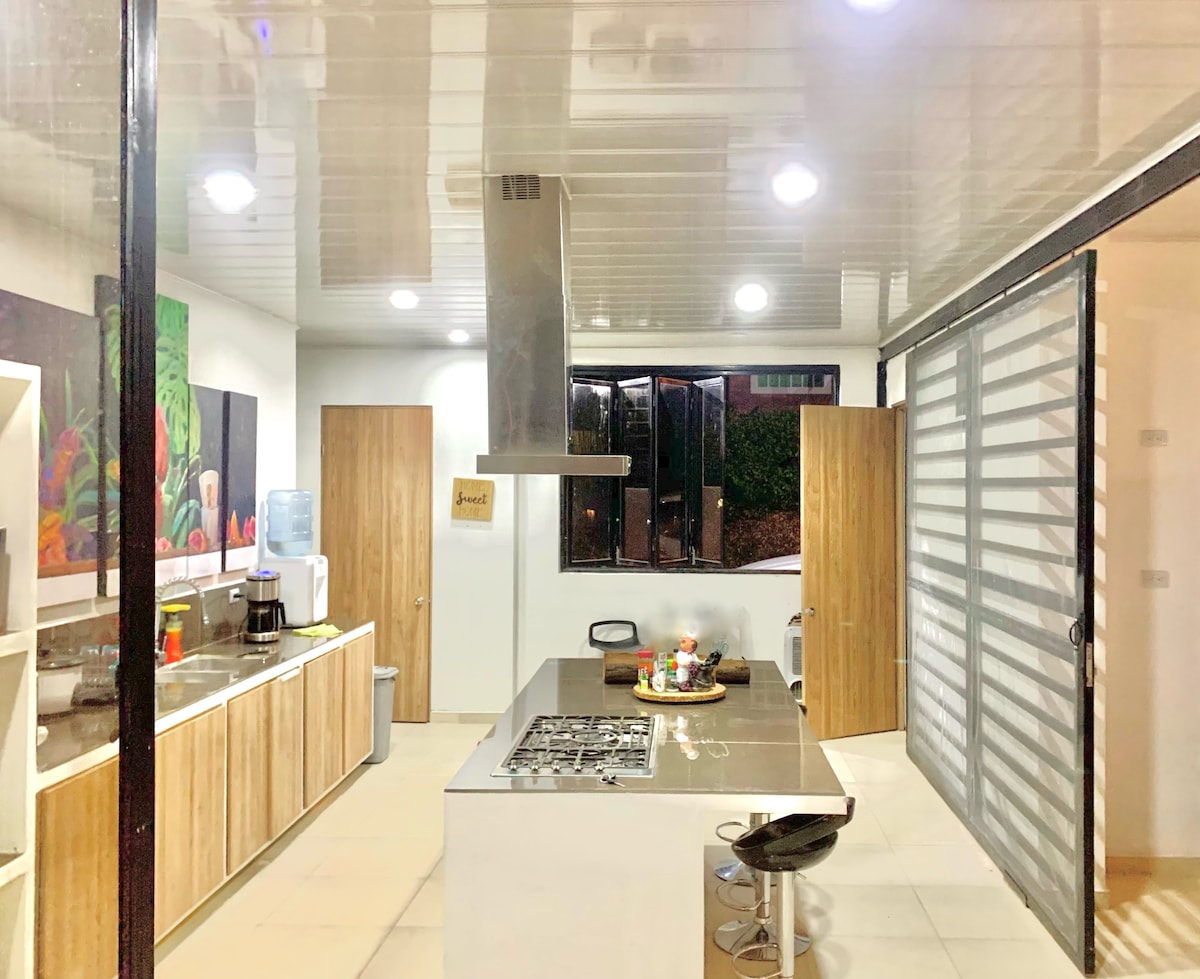 Entre las montañas que separan Bogotá del sol de Melgar, hay un refugio donde el verde se mezcla con el diseño. Una casa para descansar, para leer junto a la piscina, cocinar con puertas abiertas o ver caer la tarde entre palmas y trinos. Con piscina de sal privada, wifi confiable con Starlink, cocina totalmente equipada, espacios amplios y ventilados, y detalles cálidos en madera y fibras naturales. El lugar ideal para desconectarte sin perder comodidad, rodeado de vegetación, silencio y luz.