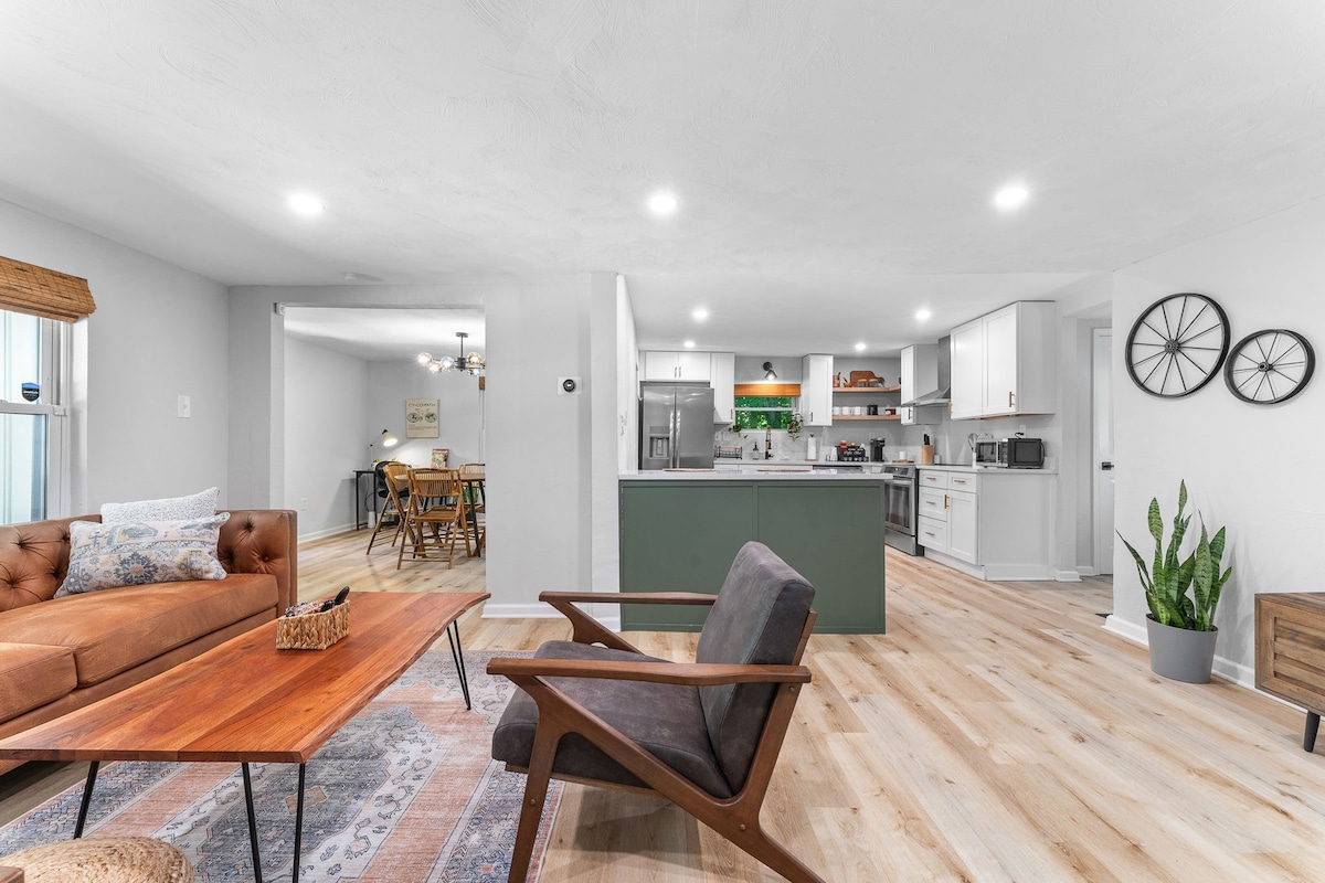 *Solo reservaciones fuera de la ciudad por favor * ¡Alojamiento alegre y elegante de 2 dormitorios a solo 15 minutos del centro de Pittsburgh! Ubicado en un barrio encantador a pocos pasos a pie de tiendas, restaurantes, lugares de culto, Mt. Campo de golf del Líbano y una tienda de comestibles. ¡La casa también está a solo 5 minutos a pie de la línea T, lo que hace que sea fácil entrar y salir del centro de Pittsburgh! 1 cama tamaño king . 1 cama tamaño queen. Sofá cama tamaño queen Televisión inteligente con aire acondicionado . Estacionamiento fuera de la calle. Cerradura inteligente