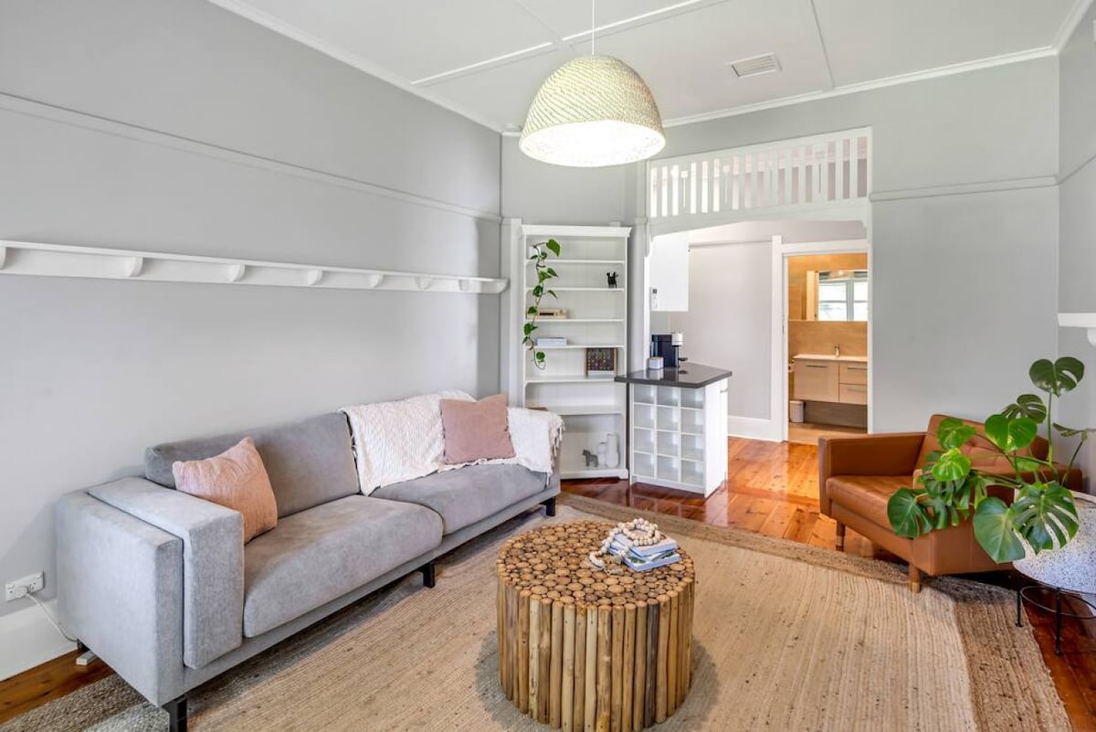Camina 3 minutos hasta el sendero de la costa para correr por la mañana a lo largo de la costa y luego relájate con un café en el patio lleno de plantas. Las tablas de los suelos pulidas y los techos altos aportan un toque clásico, mientras que el baño monocromático le da un toque moderno. Tienes una entrada independiente y se proporciona desinfectante de manos. La sala de estar y el dormitorio conservan sus tablas de suelo pulidas y sus techos altos. El baño también conserva un estilo patrimonial. La cocina de la galera tiene fogones, lavavajillas, nevera, cafetera y lavadora. Hay aire acondicionado para enfriar y calefacción. En la sala tenemos un sofá cama matrimonial. La cocina está bien equipada para que puedas preparar tus propias comidas, pero hay muchos restaurantes y cafeterías cerca. El apartamento está entre Broadway, con restaurantes de nicho, cafeterías, carnicería, supermercado y comida para llevar, y Jetty Rd, con su «milla dorada de compras», restaurantes y vida nocturna. A tres minutos de la playa y del sendero costero para hacer ejercicio. Tienes acceso independiente a lo largo de un camino frondoso, ya que el apartamento está situado hacia el centro de la propiedad, es tranquilo y no hay ruido de la calle. Siempre estamos disponibles si tienes alguna pregunta. El barrio es residencial, a solo 3 minutos a pie de la playa. El apartamento está a poca distancia de una selección de cafeterías en la cercana Broadway y a 7 minutos de Jetty Road para otras opciones gastronómicas. Se encuentra a 3 minutos a pie de la playa, a 7 minutos de Jetty Rd y del tranvía a la ciudad. El tranvía sale con frecuencia de Glenelg a la ciudad. La parada de autobús está a 3 minutos con autobuses a la ciudad o al centro comercial Marion. Hay mucho acceso al aparcamiento en la calle.