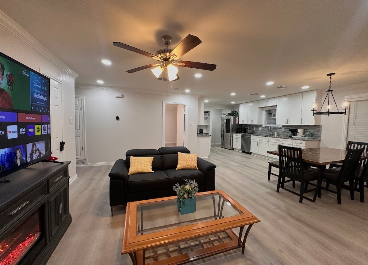 🏡 El espacio Bienvenido a este hermoso y moderno alojamiento diseñado para la comodidad, el estilo y la conveniencia. Perfecto para familias, grupos o huéspedes de día de juego, este alojamiento cuidadosamente amueblado de 3 dormitorios y 2 baños ofrece una estancia relajante a pocos minutos de las principales atracciones de Arlington. Ubicado a solo 4 minutos en auto de Globe Life Field y cerca del estadio AT&T, además de Texas Live! y Six Flags, este alojamiento es ideal para días de juego, conciertos y estancias memorables.