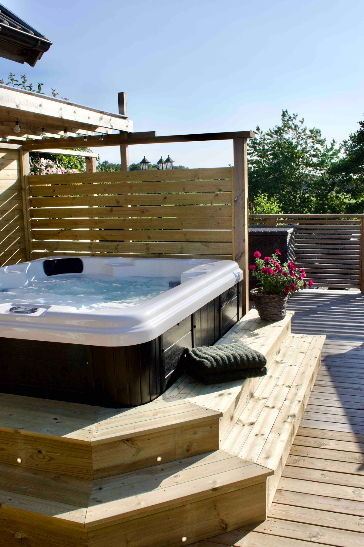 The apartment's interior has been handpicked to give you a unique holiday experience. In the 25 m2 you'll find everything you could wish for. A lovely lounge sofa from Sweef that easily transforms into a wonderfully comfortable large bed. Smart TV so you can use your own Netflix account. Fully equipped kitchen with steam oven, dishwasher, refrigerator, and all the kitchen equipment you need. In the fully tiled bathroom, there is a washing machine. Jacuzzi (bathing fee 200 SEK/day).