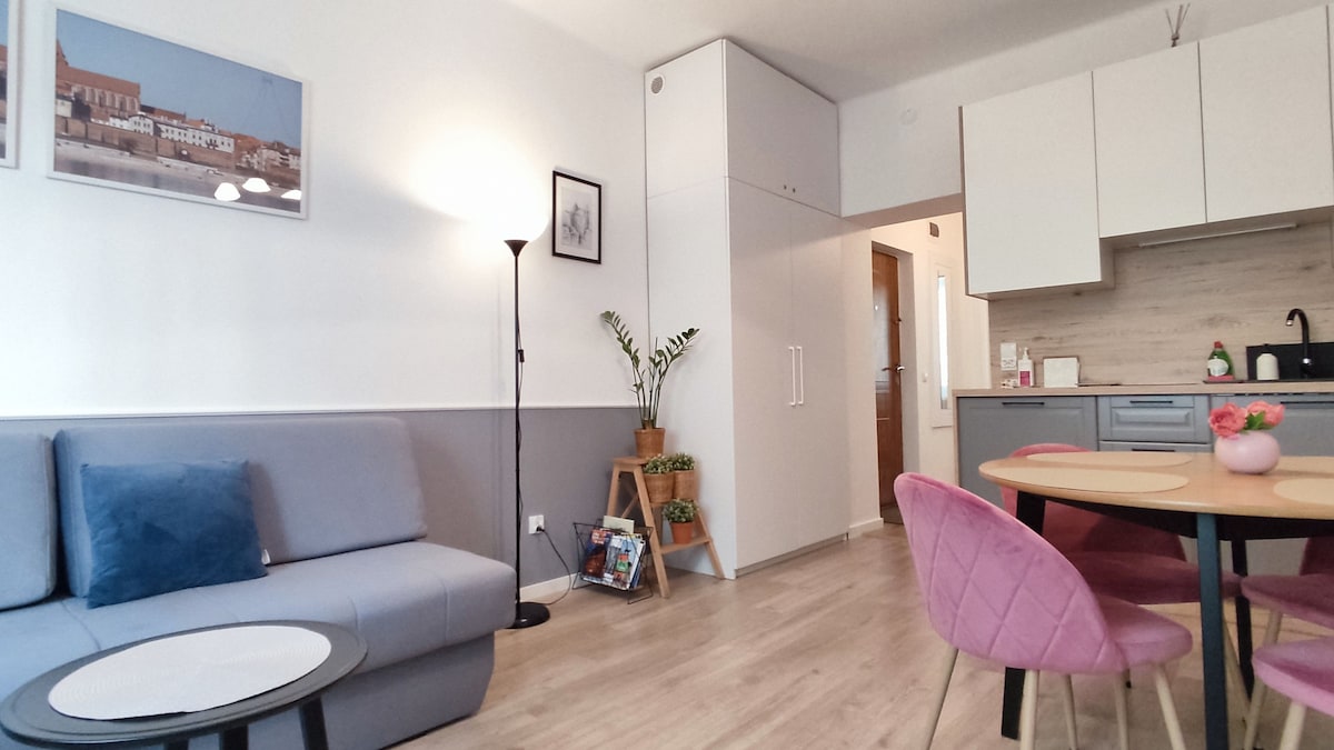 El apartamento está decorado con buen gusto, es espacioso, luminoso y funcional. Un amplio balcón te permite disfrutar del sol. Perfecto para una persona o una pareja. Se admiten mascotas, pero no dudes en ponerte en contacto con nosotros. Aparcamiento gratuito en una zona vallada o en la calle, wifi rápido, Android TV. El apartamento está situado cerca del casco antiguo y del río Vístula.