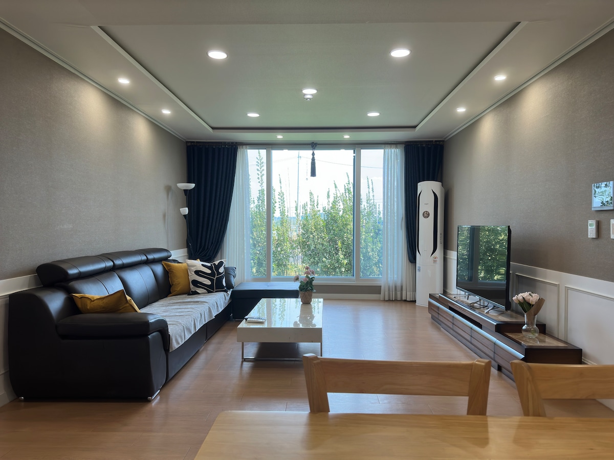 Welcome to Stay Bom in Pyeongtaek's Godeok New City! Our Airbnb is located right in front of Hambaksan Park, the largest eco-friendly cultural park in Pyeongtaek, spanning 670,000 square meters. Enjoy a variety of nature-filled experiences, including picnics, exploring scenic streams, resting at lookout shelters, using fitness facilities, playing at children's playgrounds, strolling through forest paths, and walking barefoot on soft soil trails.