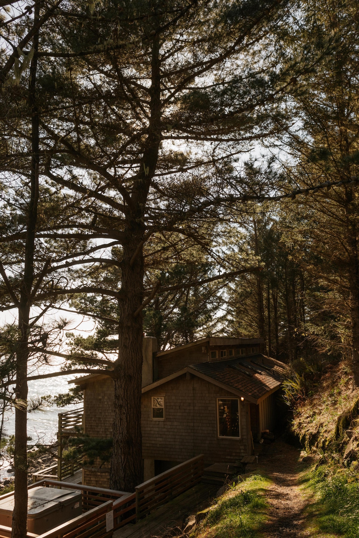 Wild Coast Lookout, situado en el hombro de una antigua pila marina, ofrece privacidad y una vista espectacular de la costa de Oregón. Con frecuencia se ven halcones y búhos en los árboles de la propiedad y, por la noche, mientras te sumerges en el jacuzzi, disfrutarás del sonido de las olas del mar y de un coro de ranas en el estuario de abajo. El mirador se encuentra a pocos minutos a pie de la playa de Turtle Rock y a poca distancia en coche de algunas de las costas de búsqueda de tesoros más espectaculares del noroeste del Pacífico.