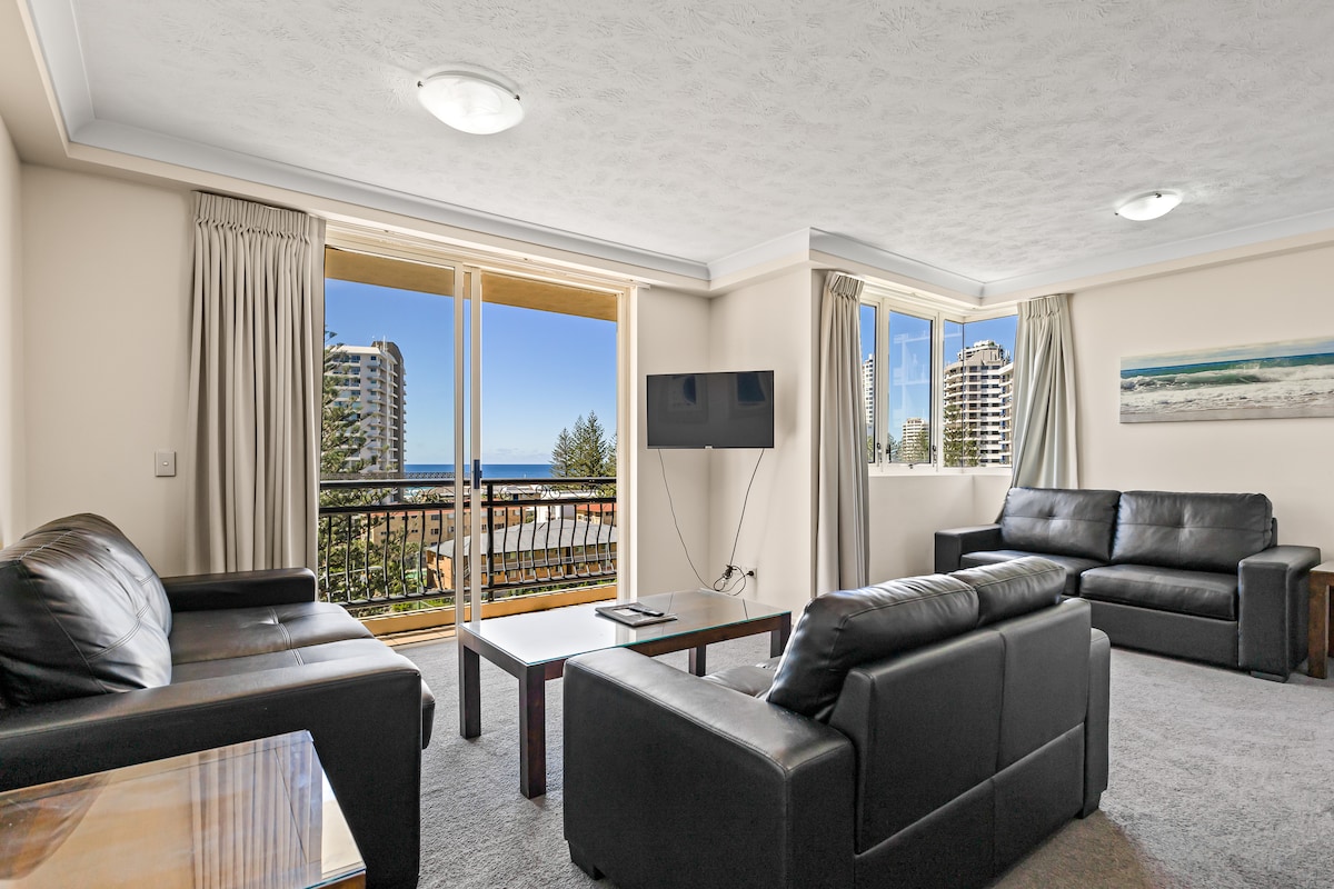 * Seguro: no hay carretera que cruzar. * Aire acondicionado en todas las habitaciones. Amplio apartamento de 2 dormitorios con ubicación absoluta frente al mar, piscina de laguna climatizada y vistas panorámicas al océano, la playa y la línea de esquí Surface Paradise. La cocina bien surtida y la máquina de cápsulas de café permiten cenar en el balcón mientras disfrutas de vistas insuperables en restaurantes en cualquier otro lugar de la Costa Dorada. Un apartamento familiar con silla alta y cuna portátil lo convierte en una opción ideal para familias y para los vacacionistas más maduros.