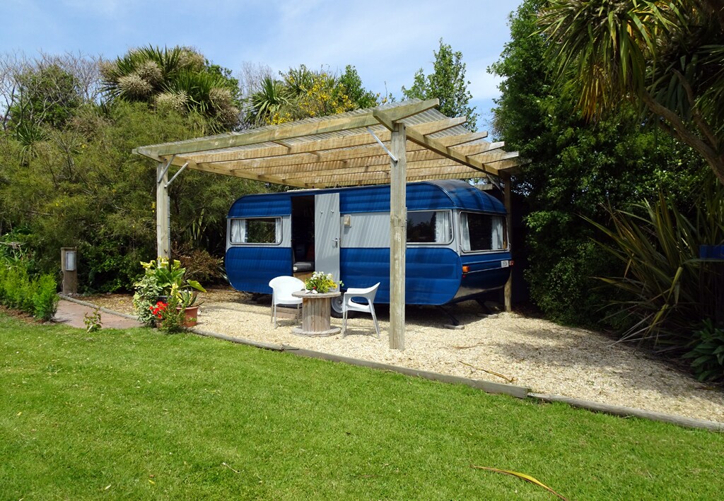 On a quiet small lifestile block the recently restored caravan is facing northeast with a view to mountains and sea. Collingwood and the beach is only 1 min away. Wharariki Beach and Farewell Spit about15 min. A small fully equiped kitchen, a seperate bedroom and spacious seating area awaits you inside. Your private Bathroom and Toilet is about 20m away in the main house. You can enjoy the peaceful setting in a way like camping used to be 40 years ago.