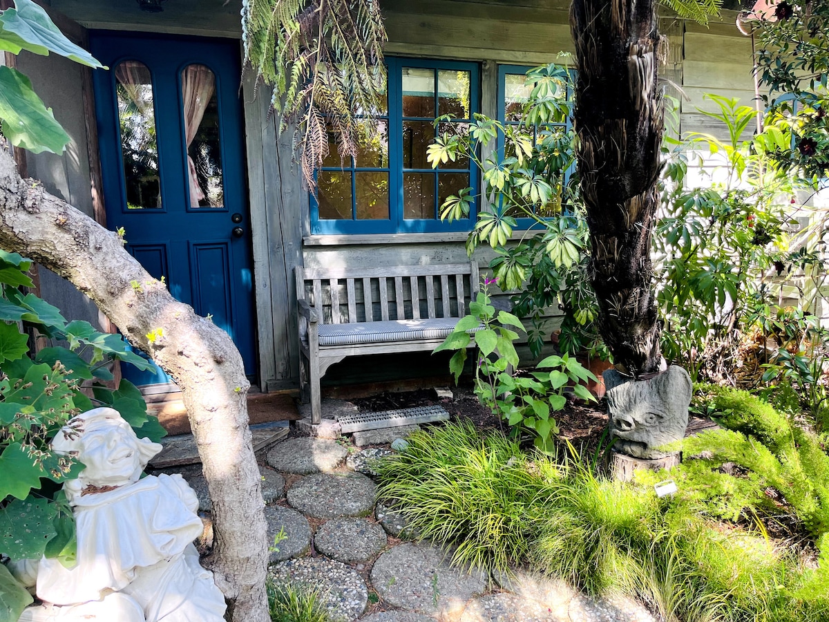 Este mágico refugio en el jardín está a un corto salto de San Francisco. Tres habitaciones llenas de sol en una estación de tren del siglo XIX se encuentran sobre árboles frutales y minipraederas con una bañera de inmersión de estilo japonés para una o dos personas. Sal a la playa, al parque, a la reserva natural, a los restaurantes, a las tiendas y a las cafeterías. Todo a menos de .02 millas. Toma el autobús o el barco al centro de San Francisco (15-25 minutos) Anfitriones encantadores en el sitio. Barrio seguro y transitable. Lleno de arte y casi Ikea gratis.