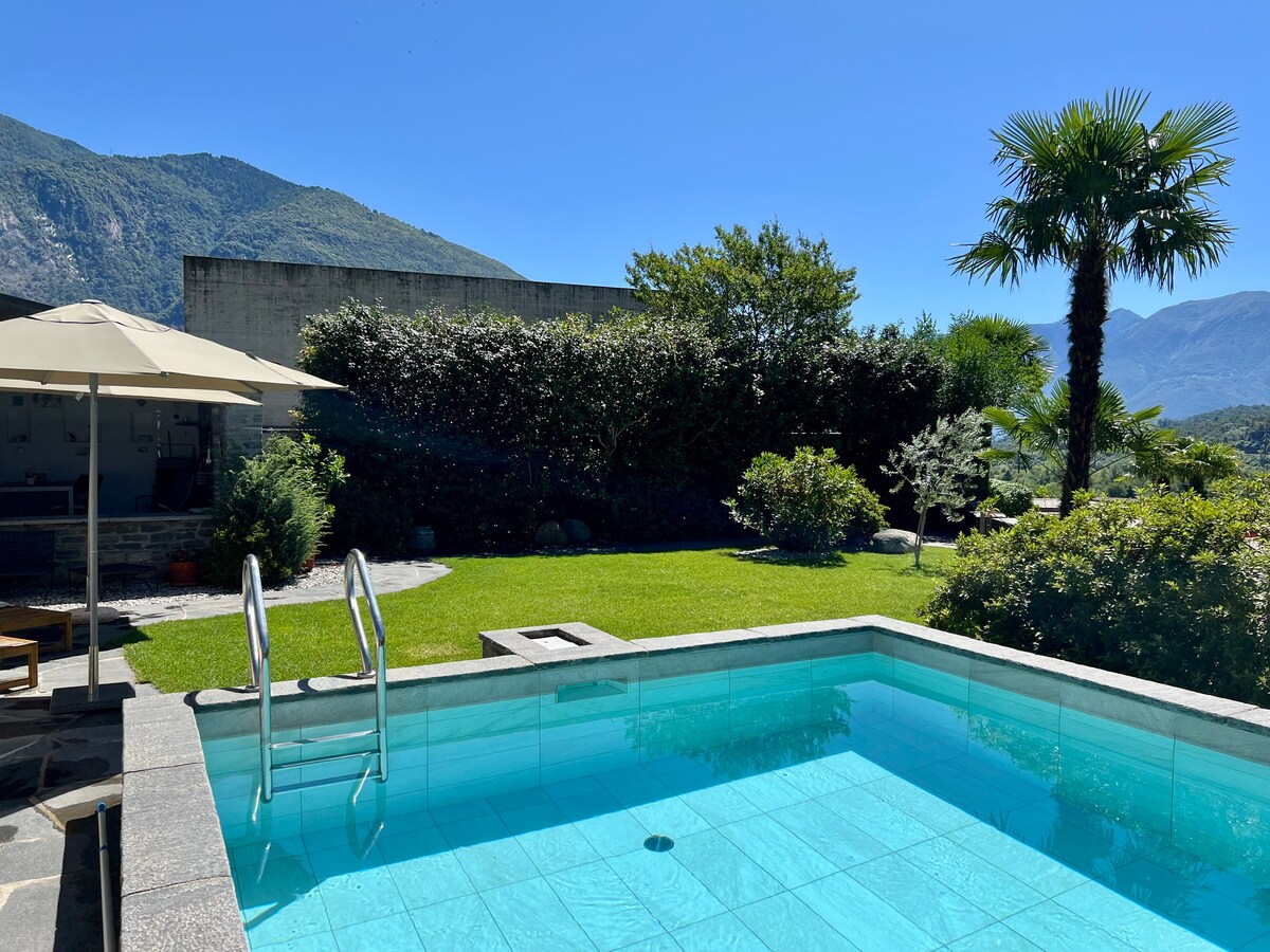 Casa Valeggia is located in a quiet residential area. The house has many windows and sun in charming position above the village of Maggia overlooking the waterfall of the Valle del Salto, nestled in a tropical garden, fully fenced and with a small swimming pool. Close to the house there is the possibility to swim in the river or at the waterfall. Recommended for people seeking tranquility, hikers and in search for privacy and contact with nature. Breath the fresh air from the valley.