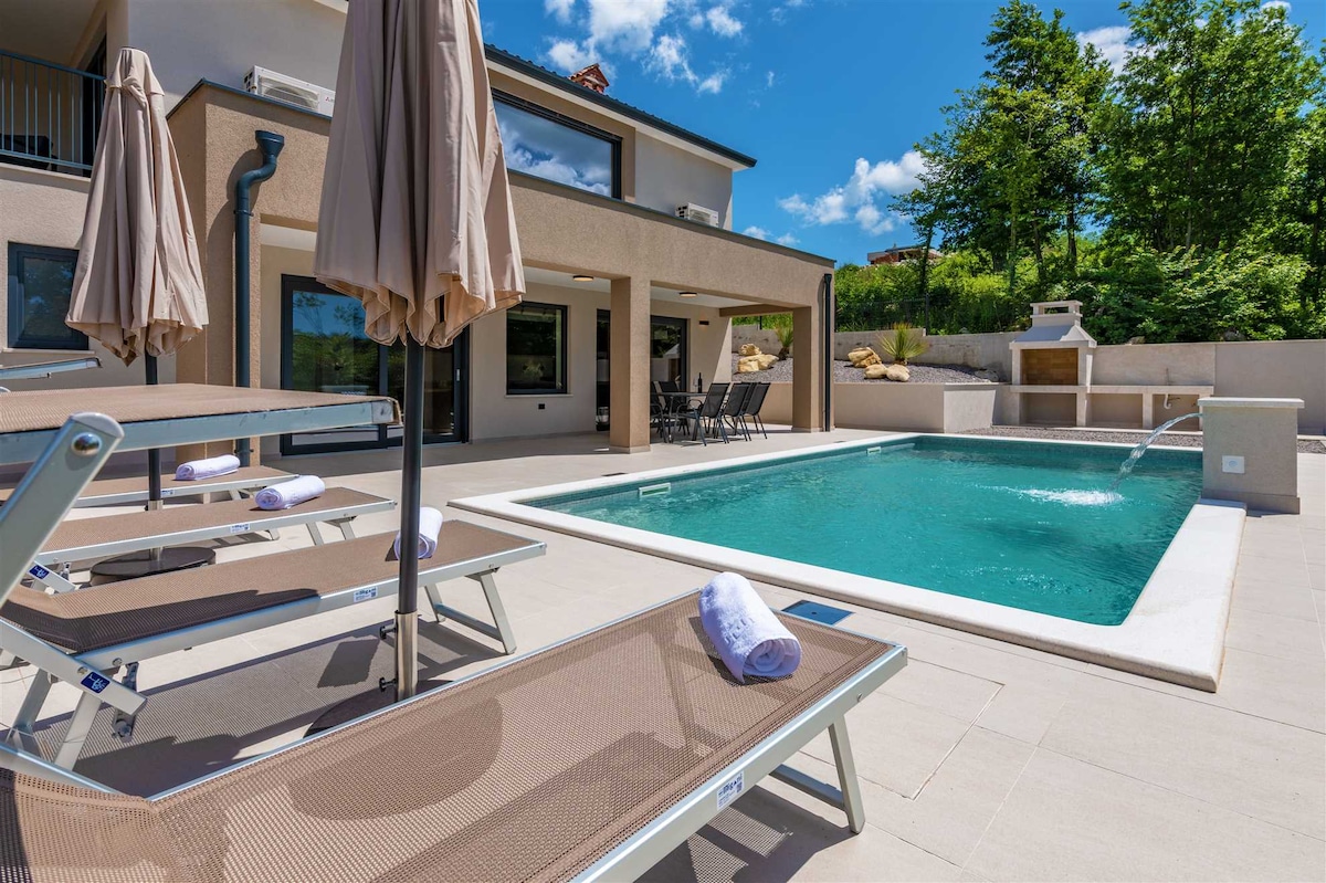 Descubre Villa Mochi en Pićan, una lujosa villa de 2 plantas que combina la elegancia moderna con la naturaleza serena. El interior de 205 metros cuadrados cuenta con 4 elegantes dormitorios, cada uno con TV, 6 baños, dos comedores y una cocina totalmente equipada. En el exterior, disfruta de un jardín privado de 900 metros cuadrados con una piscina prístina, una fuente moderna, tumbonas, sombrillas y una terraza con sombra con parrilla. Relájate con aire acondicionado, wifi gratuita, cuna para niños y estacionamiento seguro.