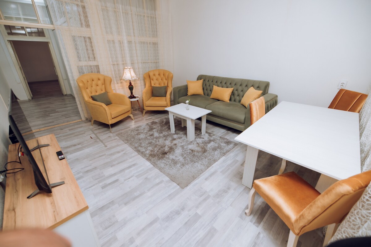 Enjoy a relaxing stay in this spacious two-bedroom house in the very heart of Ganja. The home features a huge living room, a separate fully equipped kitchen, and a small private yard perfect for outdoor dining. Step outside and you are directly at the central city square, surrounded by cafés, shops, and attractions. Free parking is available. Ideal for families, couples, or small groups.