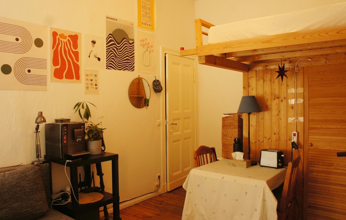 ¿Una escapada a la ciudad o una estadía larga? Con todo lo que necesitas para vivir, estos elegantes estudios de 22 m² están diseñados de manera inteligente, con texturas naturales y acabados únicos. Tendrás una cómoda cama tamaño king de 150 cm x 200 cm en el Reino Unido, un escritorio para trabajar, una cocina pequeña para cocinar sin esfuerzo y un baño moderno. ¿Tienes lavandería? La lavandería comunitaria es tuya para que la uses como quieras. Descargo de responsabilidad: puede que el apartamento de la foto no sea el que te quedas.