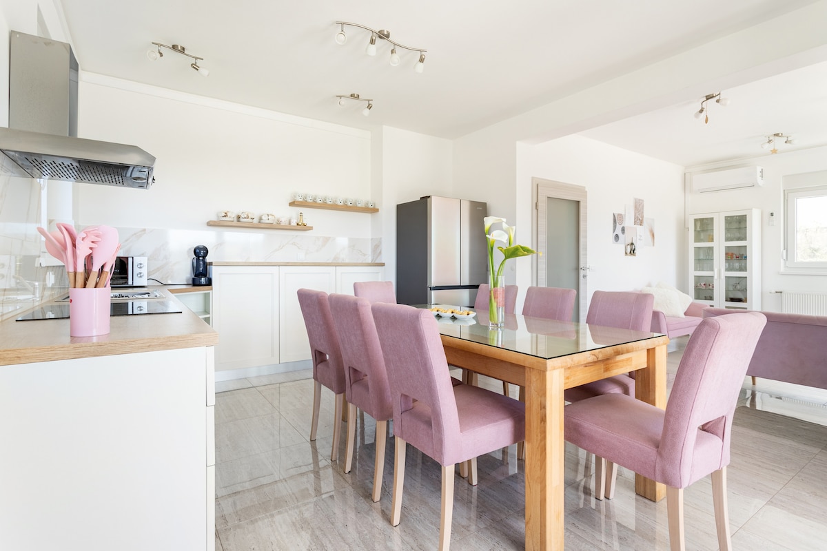 Esta hermosa villa Marina de nueva construcción se encuentra en el pintoresco pueblo de Neorić, donde podrás relajarte y disfrutar de todas las comodidades modernas ubicadas en una zona tranquila y sin estrés. Si buscas un lugar con total privacidad, lejos del entorno ruidoso pero bastante cerca de todas las atracciones locales (a 30 km de Split), no busques más. La villa está modernamente equipada y totalmente cubierta con unidades de aire acondicionado y también vale la pena mencionar los más de 1000 metros cuadrados de espacio exterior privado.