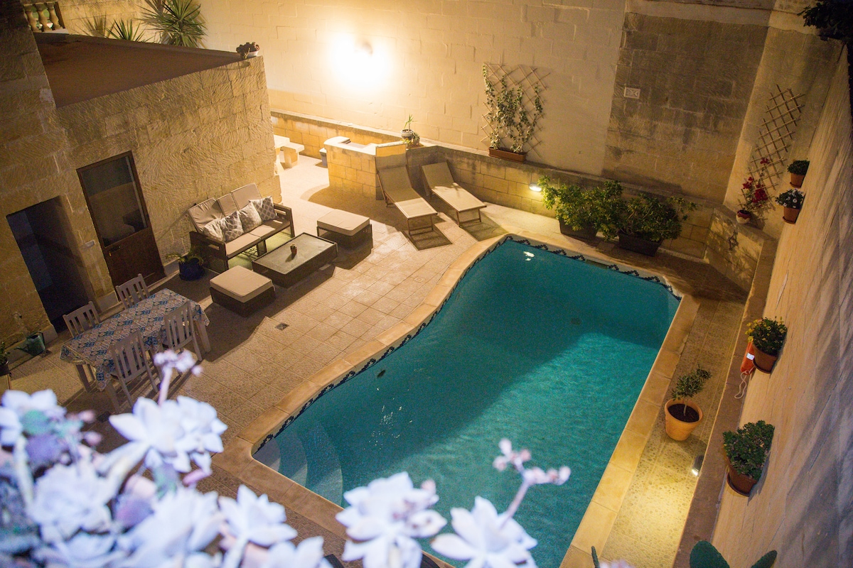 Bienvenido a nuestra encantadora granja en el corazón de Gozo. Nuestra histórica granja de piedra, con elegantes arcos interiores y vigas a la vista, ofrece dos acogedoras habitaciones con baños privados y una suite con baño privado. Situada a solo 5 minutos a pie de la plaza San Gorg de Victoria, nuestra propiedad cuenta con piscina privada y un ambiente totalmente relajante. Cada mañana, te deleitaremos con un rico desayuno internacional. Dirigido con amor por nuestra familia, nuestro B&B ofrece una hospitalidad cálida y auténtica.❤️