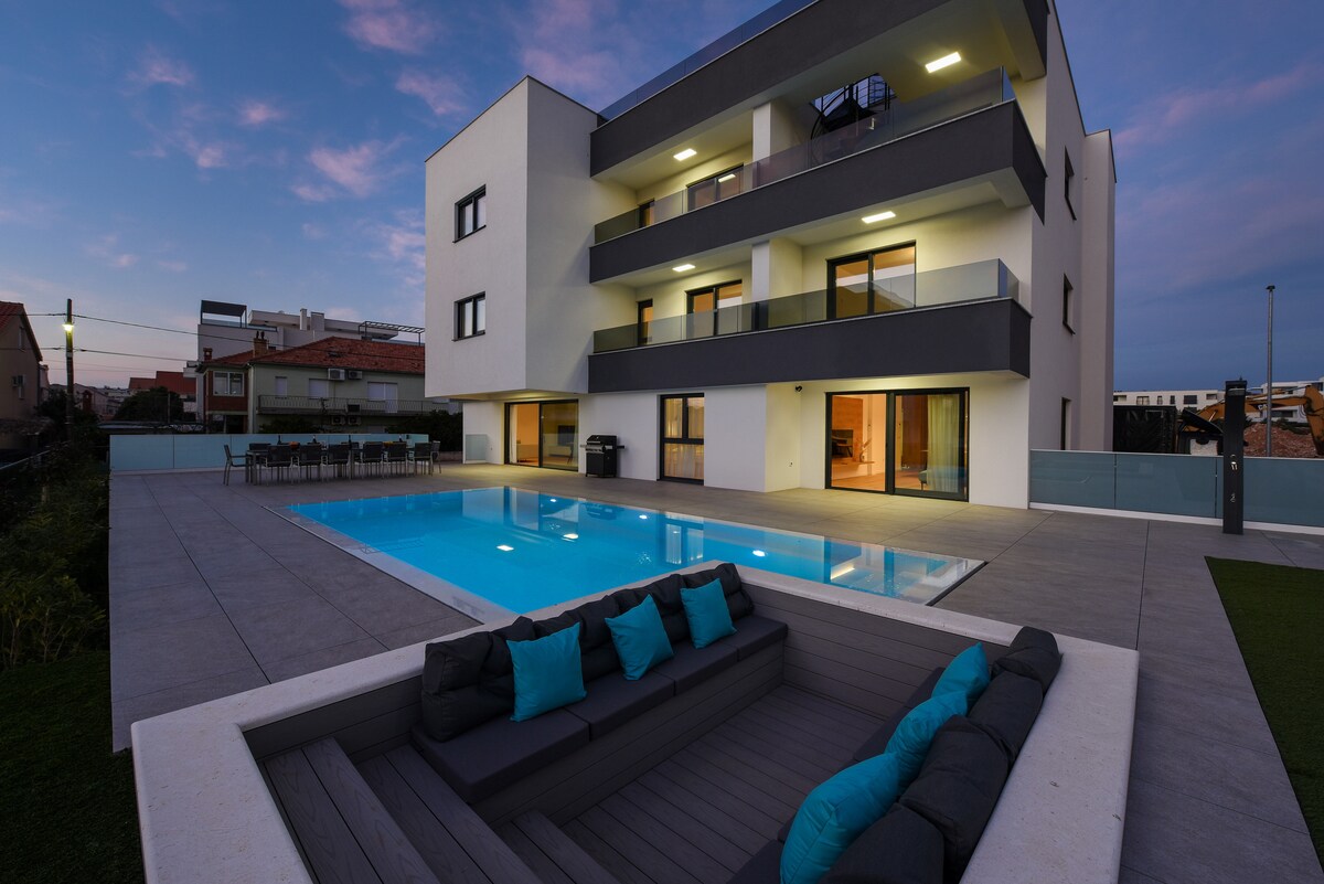 Villa Mariel moderna cerca de Zadar: piscina, jacuzzi, gimnasio