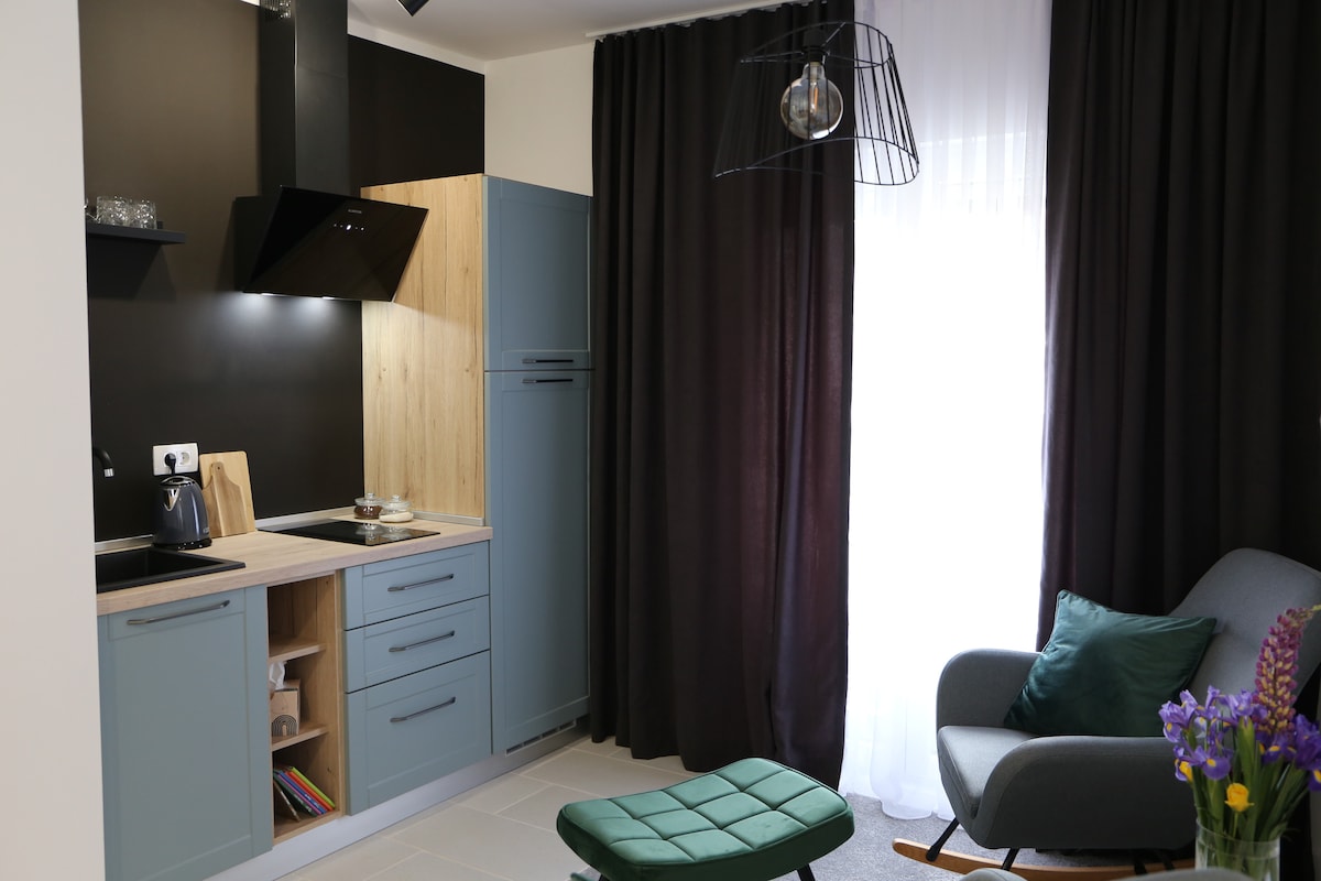 Emerald Studio Apartment está situado en Mukinje, pequeño testamento en el corazón de los lagos de Plitvice, a 12 minutos a pie de la entrada 2 y a 6 minutos de la estación de autobuses de Mukinje. Cerca hay un restaurante, un mercado y una ambulancia. Se proporciona estacionamiento gratuito en todo el edificio. El estudio es nuevo, está a solo 5 escaleras y está completamente equipado para estancias más largas. Estamos a tu disposición mientras vivimos al lado. Estamos buscando que te quedes en Plitvice agradable e inolvidable.