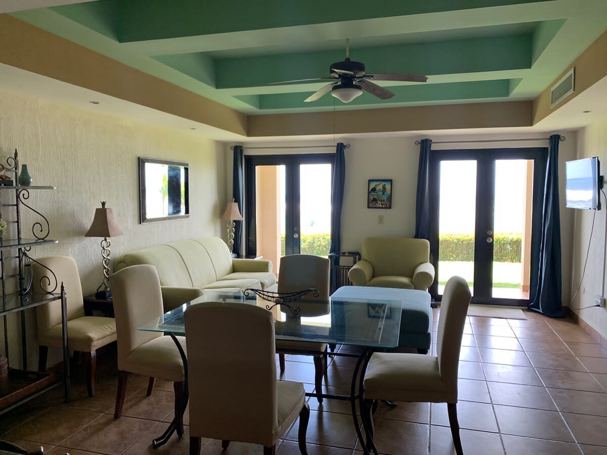 Con un área de 500 ft² (46.45 m²), el Suite 112 es el apartamento de una habitación en planta baja más cercano a las piscinas frente al mar y al restaurante Sea Salt en Gran Pacifica Resort. Está equipado con una cocineta, Central AC, Smart TV, wifi, y un sofá cama en la sala con vista al mar. También cuenta con un comedor para 4 y todos los utensilios de cocina, cubiertos, copas y más. Tiene un hermoso porche frente al mar con sillas, para disfrutar de las mañanas y las puestas de sol.