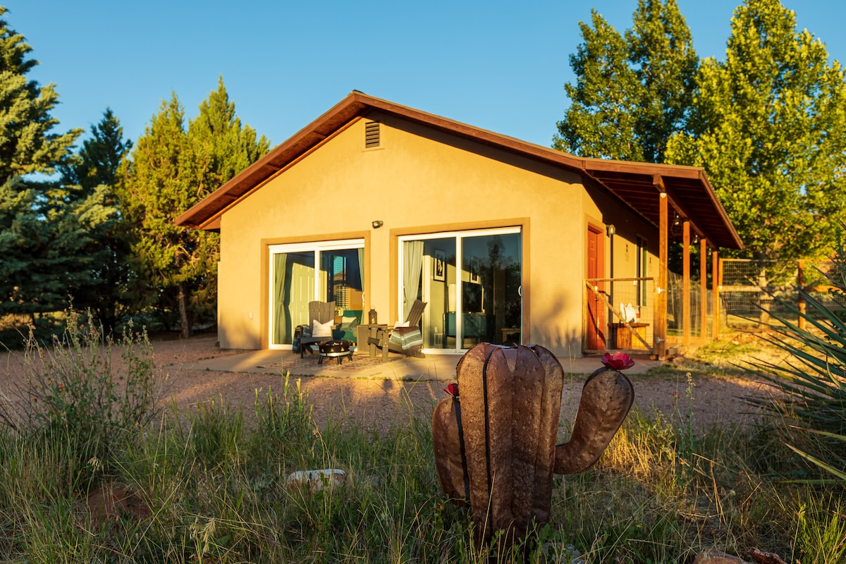 Increíbles vistas al paisaje desértico con rutas de senderismo a las afueras. ¡Sé nuestro huésped y alójate como un habitante más! Esta casita independiente es privada y aislada, pero a menos de 10 minutos del centro de Kanab, a 40 minutos del Parque Nacional Zion, con el Parque Nacional del Gran Cañón y el Parque Nacional Cañón Bryce a 2 horas en coche. Disfruta de una gran cocina bien surtida, una soleada sala de estar con vistas pintorescas, una terraza privada, dos dormitorios y un baño.
