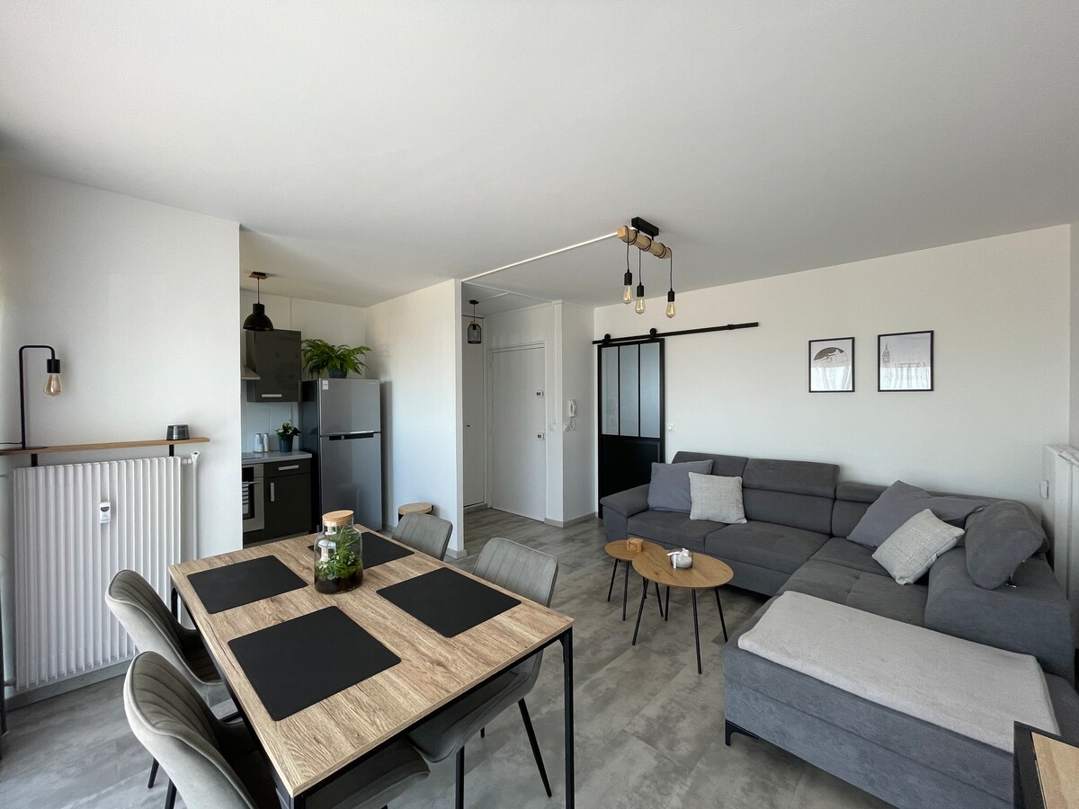 Bienvenido a nuestro encantador apartamento céntrico y tranquilo en Calais, ideal para familias, parejas o amigos con capacidad para 6 viajeros - Playa y el famoso «Dragón de Calais» a 5 minutos a pie -Comercios, mercado, panadería y restaurantes en las inmediaciones -A 5 minutos del puerto y del ferry a Inglaterra -Situado en el segundo piso de un pequeño edificio cerca del faro -Aparcamiento gratuito y fácil alrededor del edificio -Transporte público en la planta baja del edificio (autobús) -Conexión de fibra - Cocina equipada