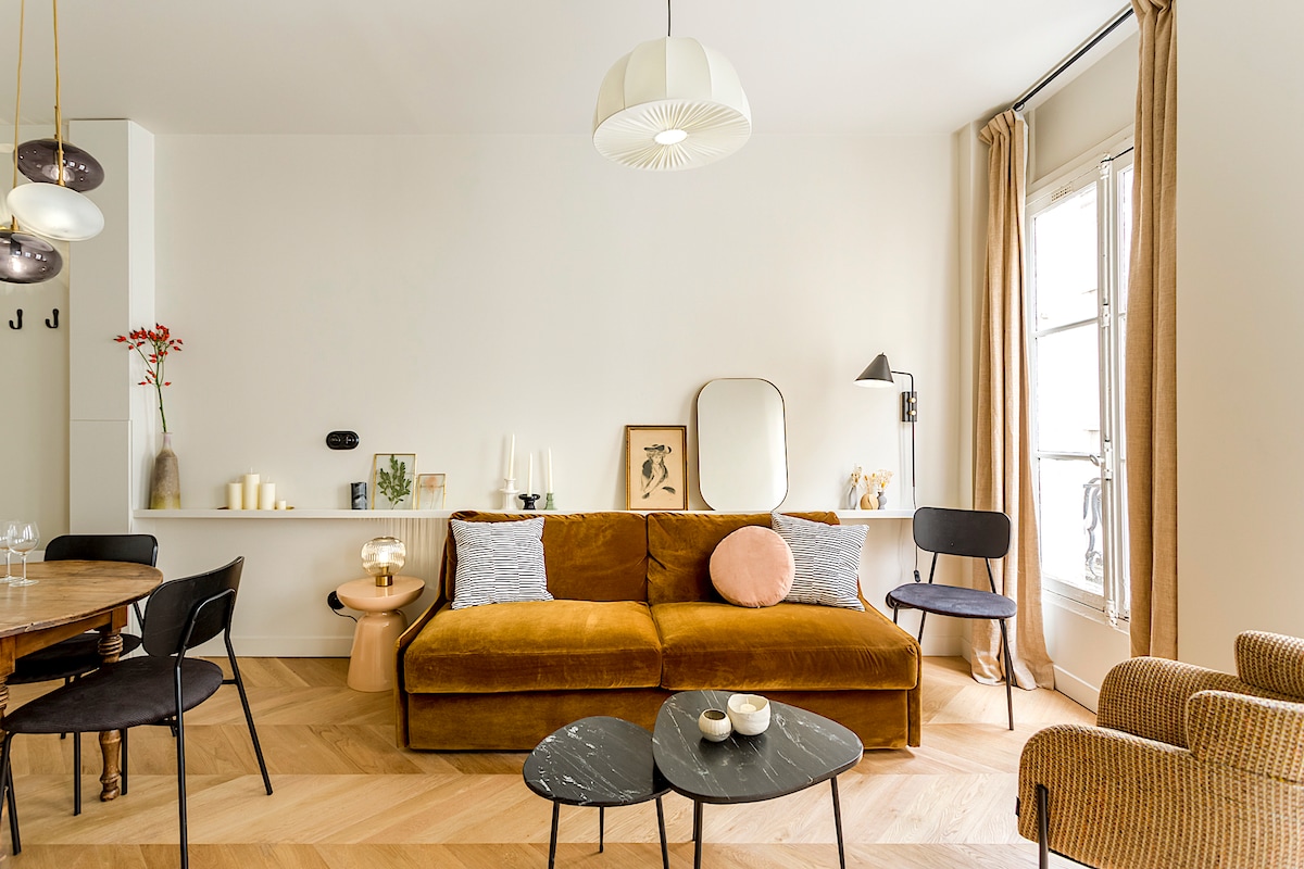 Bienvenido a nuestro apartamento situado en el animado barrio de Grands Boulevards de París. Conocido por sus tiendas de alta gama, sus restaurantes de moda y su animada vida nocturna. Las estaciones de metro Grands Boulevards y Bonne Nouvelle a 5 minutos a pie, le permiten llegar fácilmente a todos los lugares de interés famosos de la ciudad. Con sus dos amplias habitaciones y su gran estancia, este apartamento es perfecto para darle la bienvenida en un ambiente cálido y lujoso.