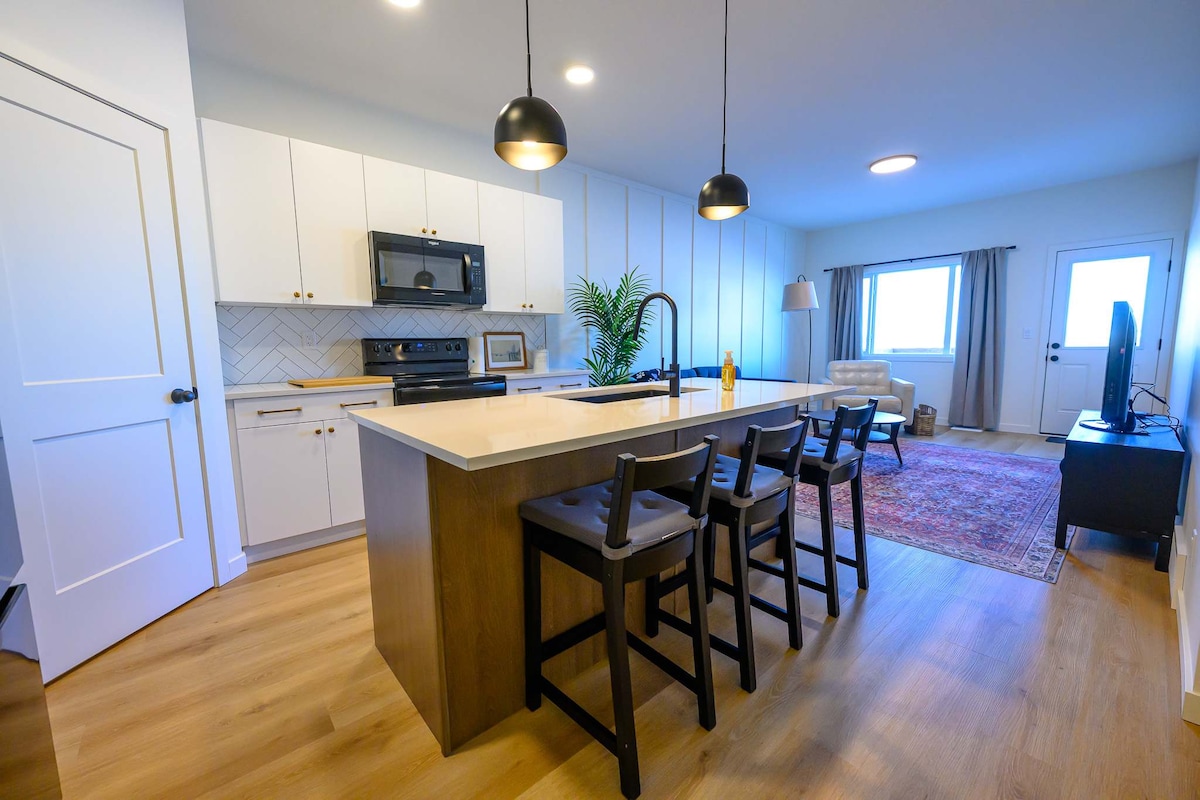No hay tarifas ocultas con esta tranquila, elegante y moderna suite inferior ubicada en el vecindario más nuevo de Westgate. El espacio cuenta con techos altos, parques cercanos, senderos para caminar y no hay vecinos en tres lados. Para tu comodidad, cuenta con una entrada independiente, estacionamiento en la entrada, gimnasio y servicios de vapor. La ubicación a pocas cuadras del hospital, el aeropuerto, Costco, Walmart, restaurantes, plazas comerciales y muchas otras comodidades hace de esta suite la base perfecta para tu viaje.