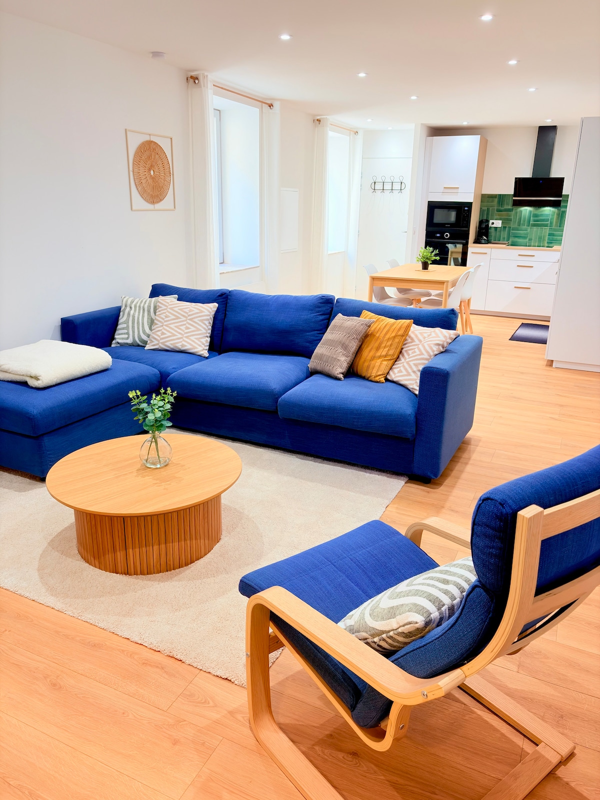 Hemos renovado completamente nuestro apartamento en el centro de la ciudad para convertirlo en un espacio cálido y agradable para vivir. Todo está pensado para su comodidad: una acogedora sala de estar, una cocina equipada, un dormitorio con ropa de cama cómoda y un baño moderno. Encontrará todo lo necesario para una estadía sin preocupaciones: WiFi, lavadora, secador de pelo… Ya sea que esté de viaje o de viaje, ¡estaremos encantados de darle la bienvenida!