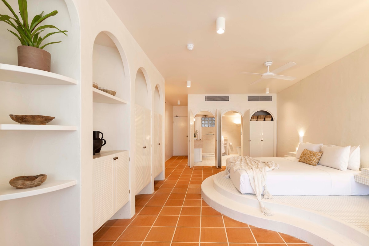 ¡Estudio de lujo recientemente renovado en medio de la acción de Port Douglas situado en el Club Tropical Resort! A poca distancia a pie de varios restaurantes, pubs con música acústica en vivo, tiendas y supermercados, justo enfrente de parques, paseo marítimo y mercado dominical. El centro de la acción también significa algo de ruido. Este estudio cuenta con sala de estar/dormitorio, cama tamaño king, cocina pequeña con microondas, nevera/congelador, ducha y balcón. El sofá se puede organizar como una cama para un niño.