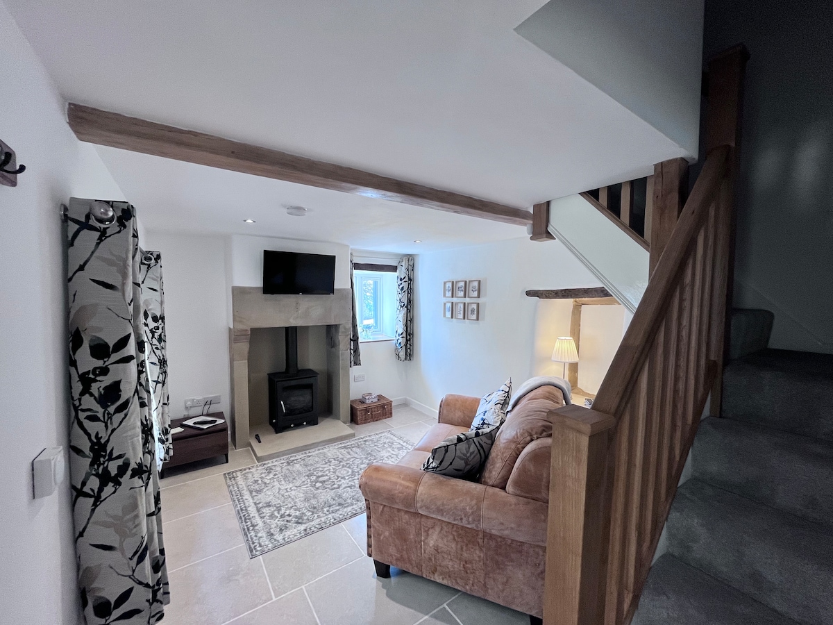 Our lovely 18th century cottage was completely renovated to the highest standard in 2016 with solid oak fittings throughout offering guests luxury and homely accommodation. The cottage easily accommodates 3 people with one double bedroom with king size bed and one spacious single bedroom. The cottage has full central heating with radiators in all rooms, and under floor heating in the kitchen. For extra cosy nights there is also a log burning stove in a Derbyshire gritstone fireplace.