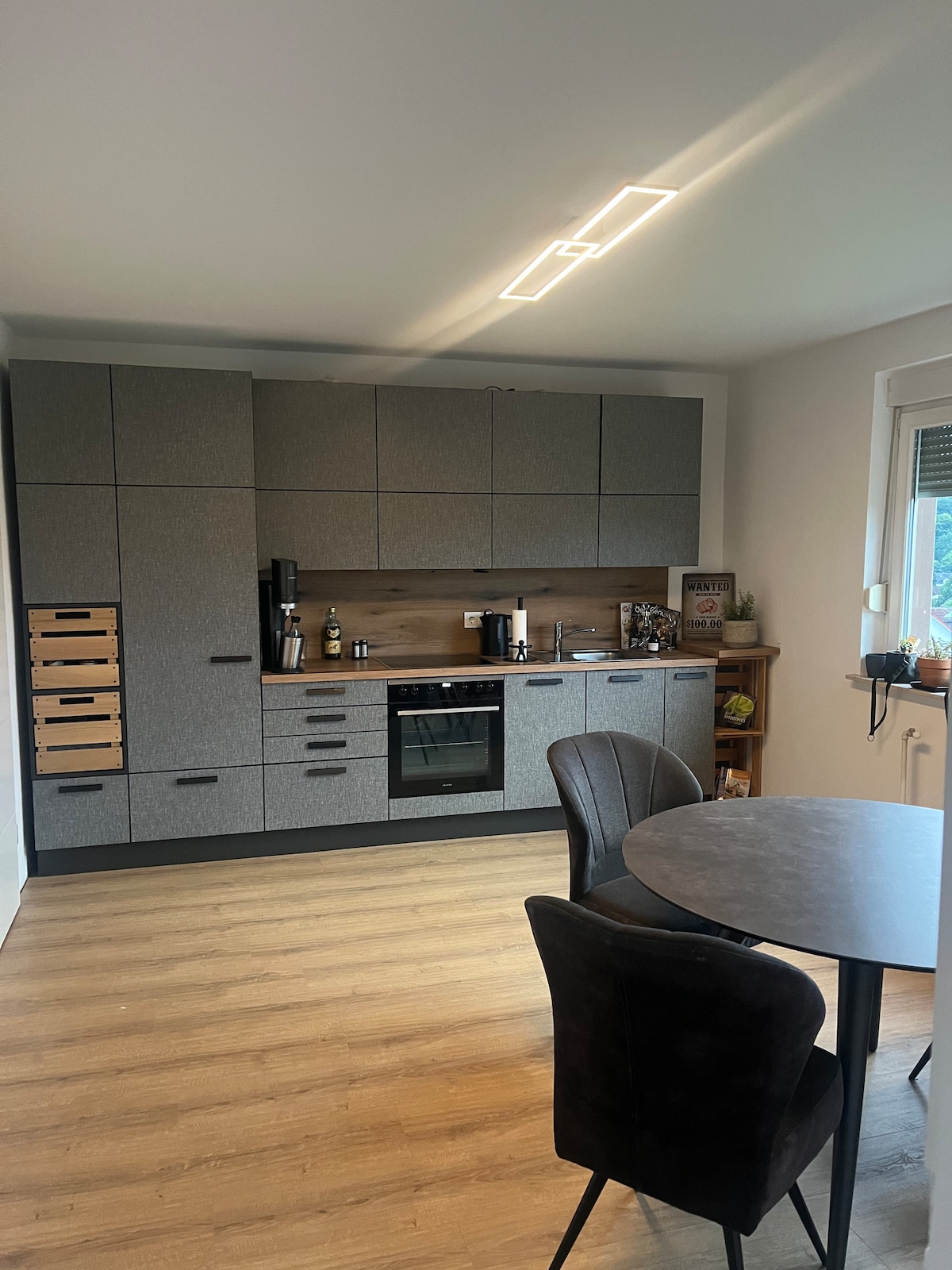Ya sea explorando Vogelsberg en bicicleta, visitando las ciudades con entramado de madera más bellas, disfrutando de la naturaleza en Vogelsberg o relajándose en la zona después de un día de trabajo, aquí es posible. Recién reformado y equipado con materiales de muy alta calidad. Los armarios de la cocina y la nevera están llenos, ver fotos. No es necesario que vaya a hacer la compra. La facturación del «consumo» se realiza a su propia discreción, no hay «condiciones de minibar». La lavadora-secadora Miele lava la ropa pequeña (3 kg) de una sola vez