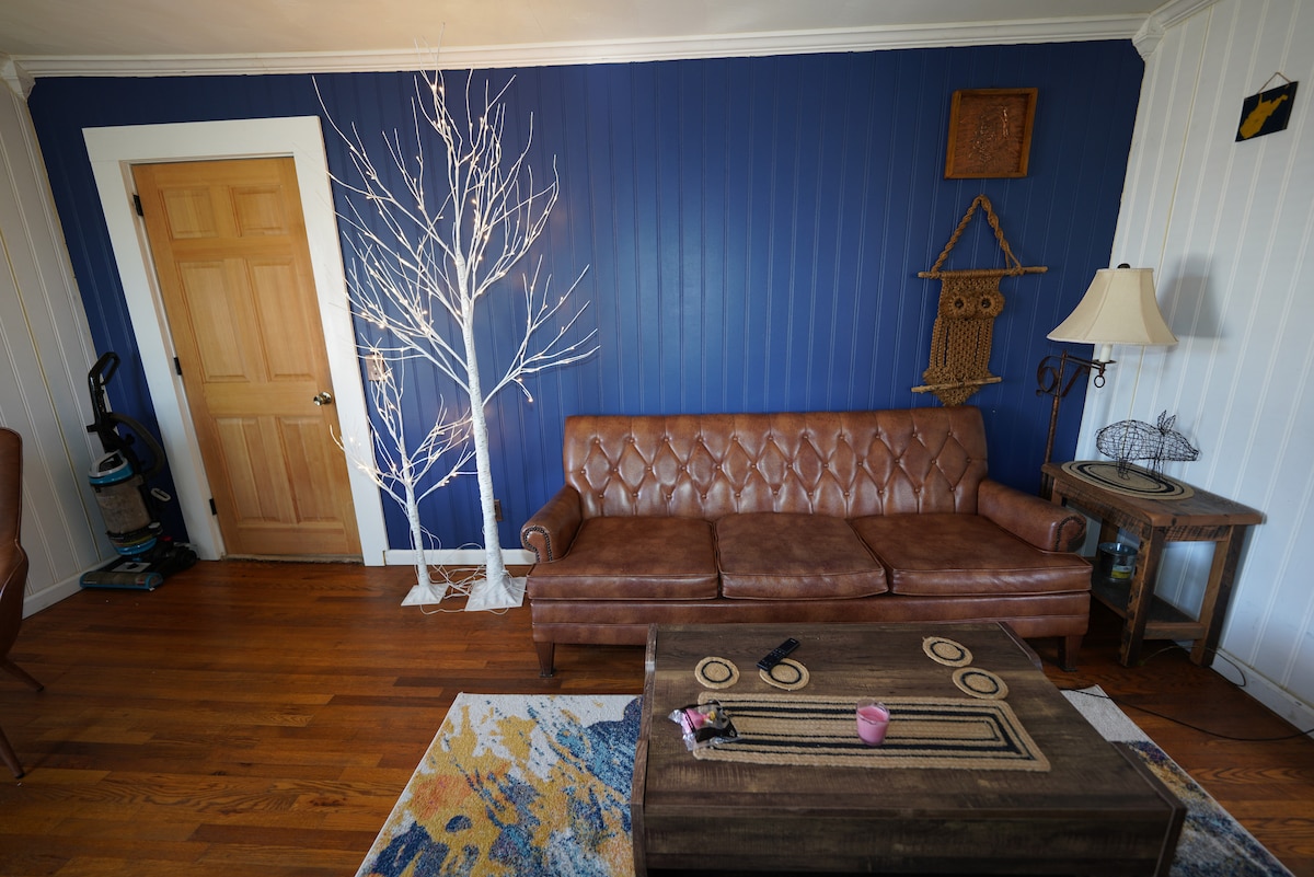 Alójate en la granja Lemuel Chenoweth magistralmente diseñada a lo largo del río Tygart. Construida en 1857, esta suite del segundo piso ofrece muebles de antigüedades, una entrada privada, dormitorio principal, baño, cocina pequeña y sala de barro. Tiene una cama tamaño queen, vestidor, gran porche con vistas al río, una bañera con patas con ducha, lavabo, inodoro y una cocina pequeña de granja bien surtida con una cocina de inducción doble, fregadero , nevera y mucho más. No ofrecemos televisión. Cerca de Elkins.