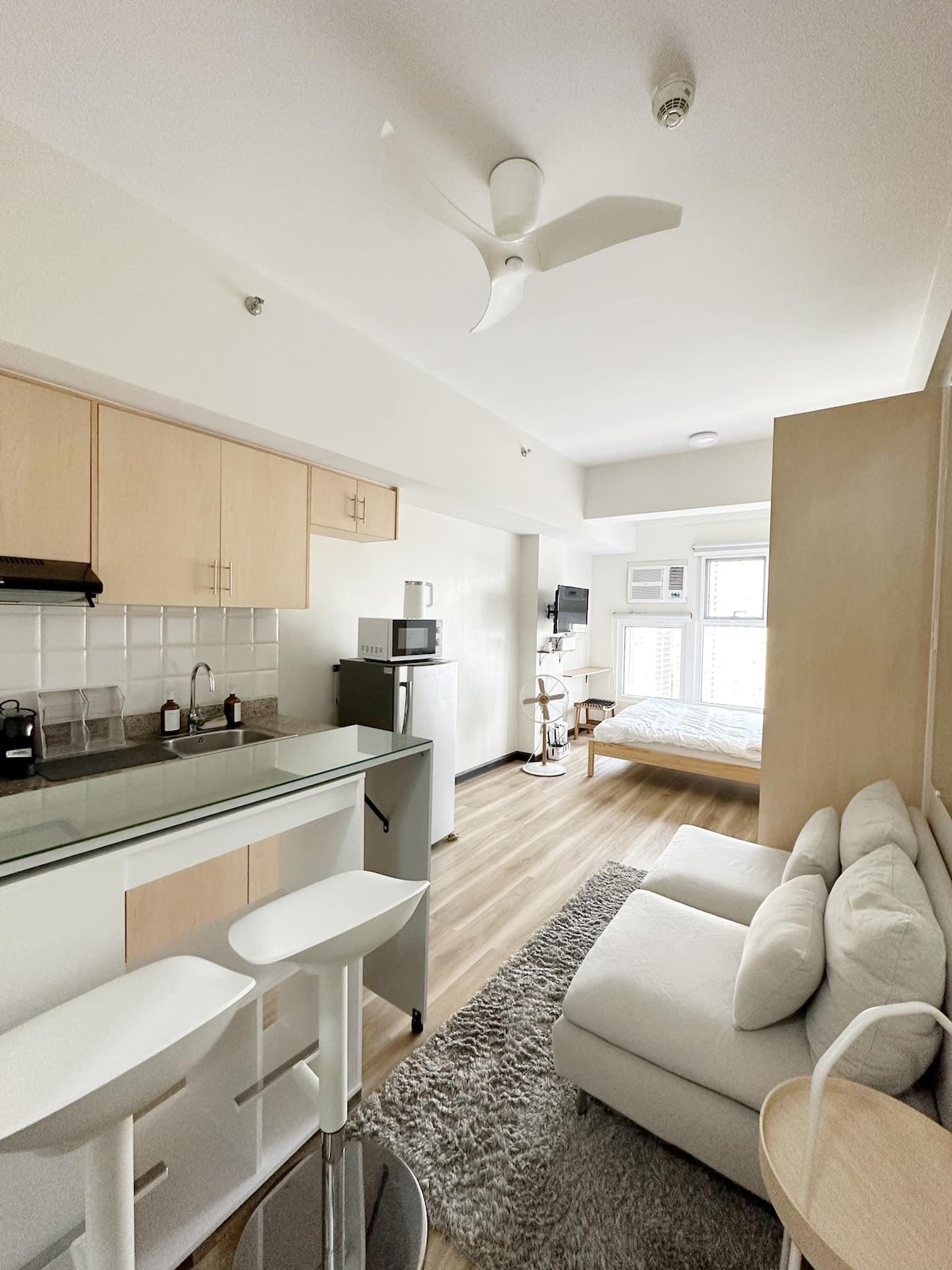 ¡MABUHAY! Tanto si estás de viaje de negocios, visitando a tu familia o viajando por Asia, no busques más. Lo que una vez fue un apartamento de un dormitorio se ha convertido ahora en un amplio estudio grande (¡cuarenta y tres metros cuadrados!). Ubicado en uno de los edificios residenciales más altos de Filipinas, puede ser tu hogar lejos de casa. Si las fechas seleccionadas están reservadas, también puedes echar un vistazo a nuestros otros estudios administrados haciendo clic en mi perfil.