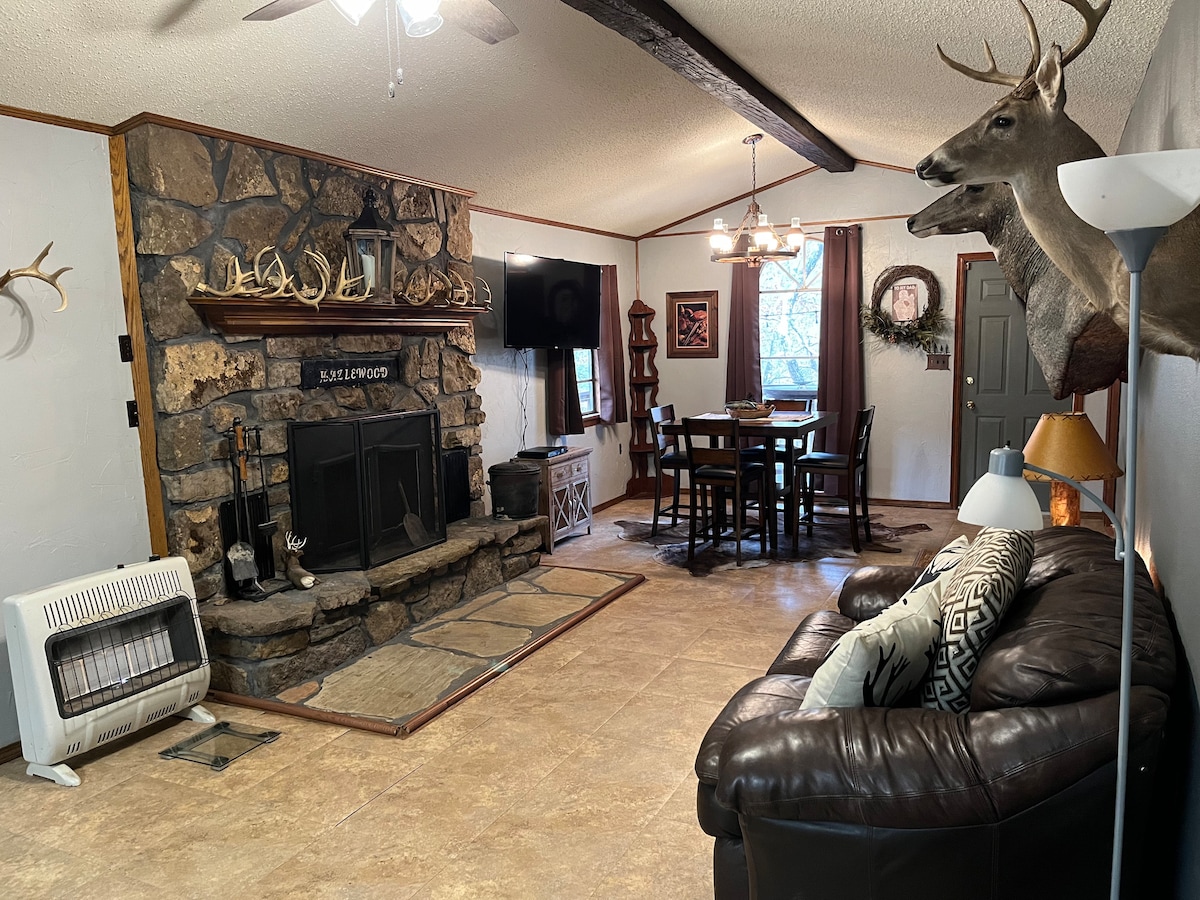 Esta acogedora casa de 3 dormitorios y 2 baños + loft está situada en el agua en el lago Greer's Ferry en Higden. El camino hacia el agua tiene una hermosa vista y es un gran lugar para saltar al lago o echar un sedal. El equipo acuático proporcionado a los huéspedes incluye 2 kayaks con remos y más. Esta casa del lago tiene 2 habitaciones tamaño king con vistas al lago y nuevos colchones híbridos. La habitación doble tiene un nuevo colchón de espuma viscoelástica que se extrae para hacer una cama tamaño king. El loft tiene un colchón tamaño queen. Chimenea eléctrica y cocina actualizada.
