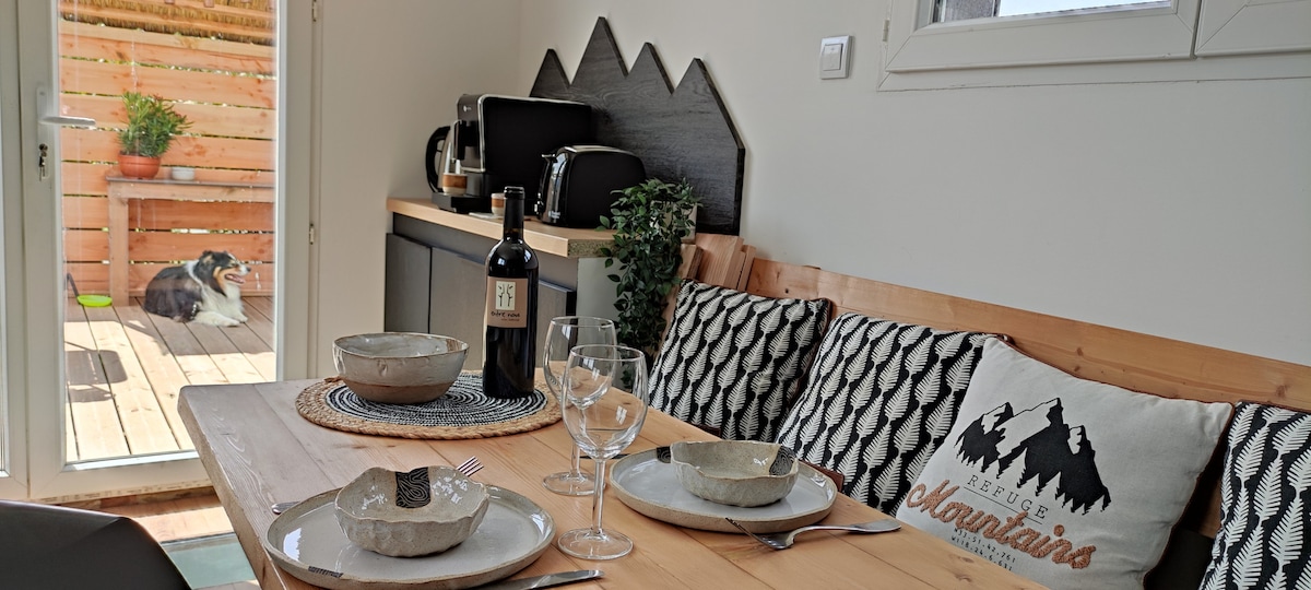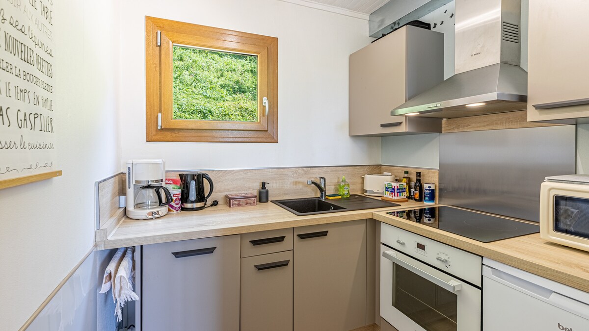Pequeña casa Cosy SPA, jardín/lago y montañas