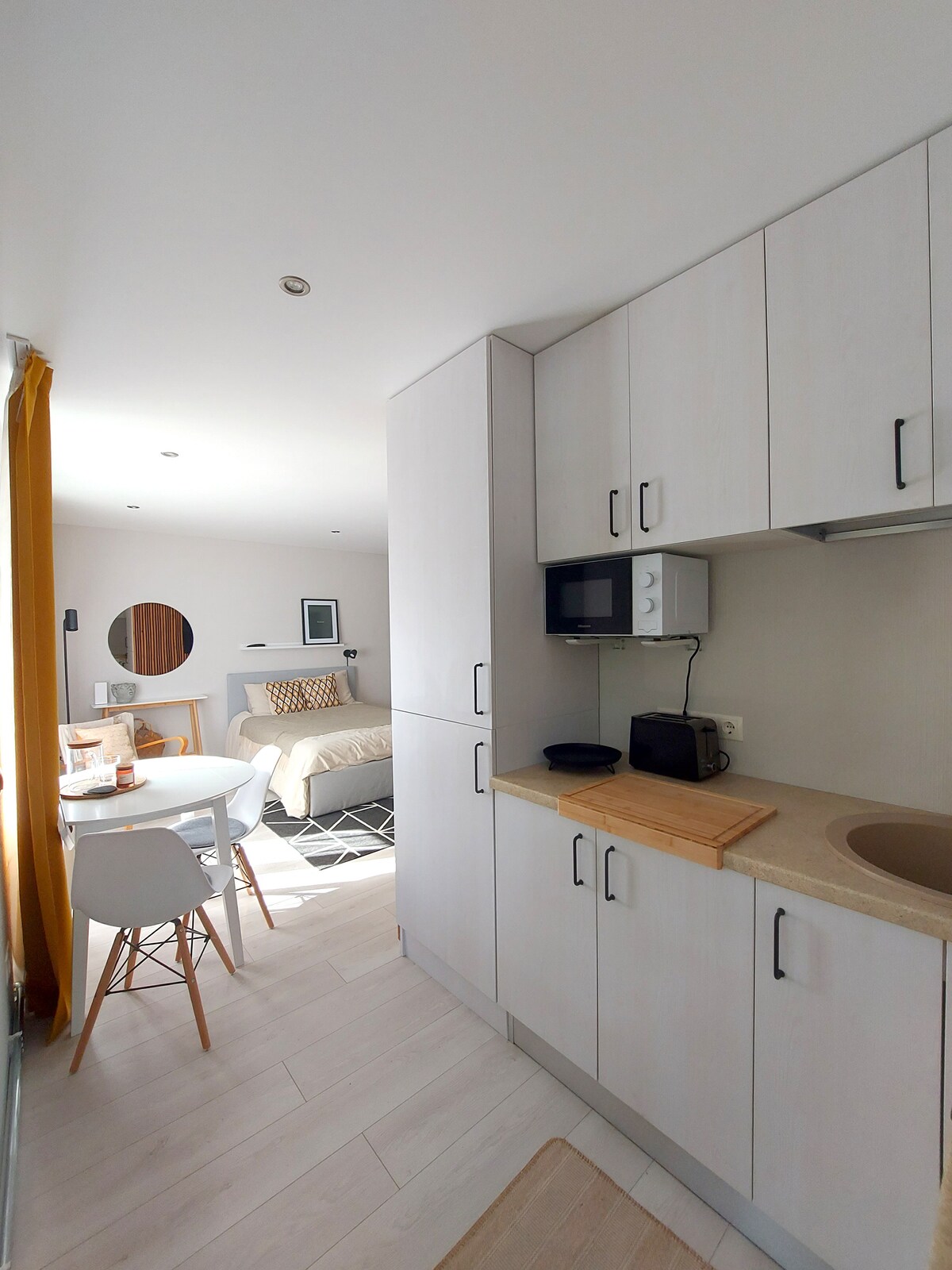 En este alojamiento se respira tranquilidad: ¡relájate con toda la familia! Este apartamento tipo estudio tiene todo lo necesario para que te sientas como en casa. • Buena ubicación. A 1,6 km del centro, a 3,4 km de la playa central, a 950 m de la estación de autobuses y a 900 m del Centro Olímpico LOC. • Todos los servicios necesarios, como wifi gratuito, TV, cocina bien equipada, lavadora con secadora (2 en 1) y secador de pelo. • Entrada independiente. ¡Menos es MÁS! Servicios y zonas comunes Te enviaremos las instrucciones de llegada autónoma el día de la llegada.