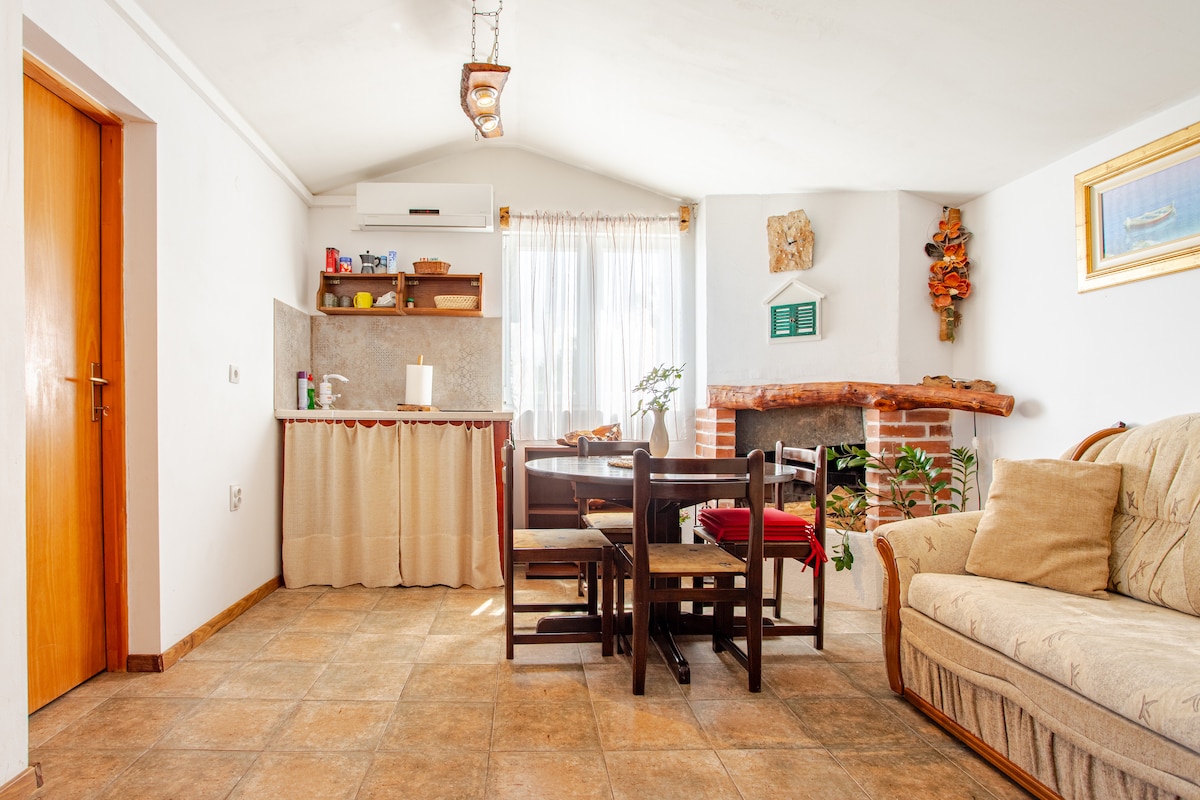 Nuestra encantadora casita está situada en un olivar. Está rodeada por el hermoso paisaje adriático. Las montañas ofrecen muchos paseos y carriles bici. Las playas y el mar están a 5 minutos en coche. Además, las principales características de la casa son las impresionantes vistas, la paz y el aislamiento. El espacio tiene un toque rústico y sencillo para que te sientas como en casa.