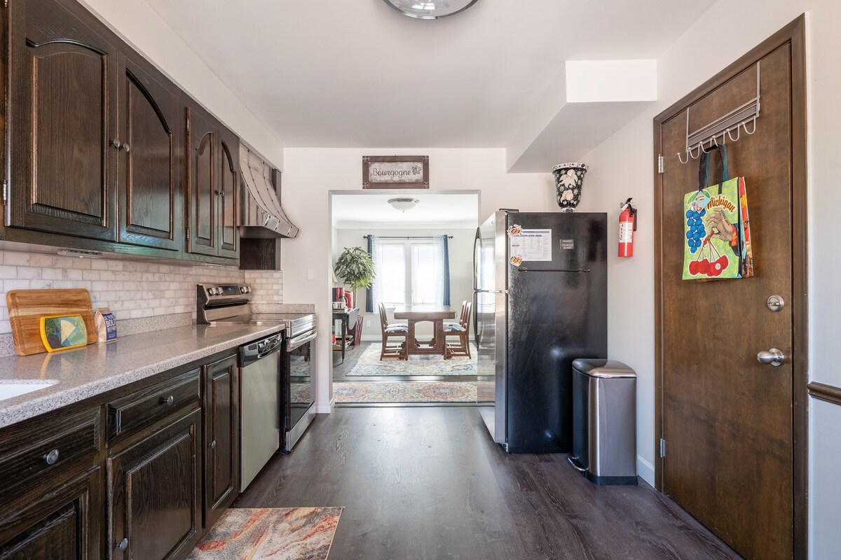 Retiro acogedor y tranquilo para solteros o parejas. Este pintoresco apartamento Grosse Pointe Park en el segundo piso cuenta con una cama grande para mechones y agujas tamaño king. La sala de estar tiene un televisor INTELIGENTE de 65pulgadas con antenas para ver los juegos locales de Michigan. El comedor tiene capacidad para 4 personas y la cocina tiene todas las necesidades necesarias para una comida gourmet o un plato rápido microondas. El dormitorio tiene un televisor montado con un dispositivo de transmisión. Alojamiento para estadías de corta duración con licencia GPP. Número de permiso: PBL25-0242