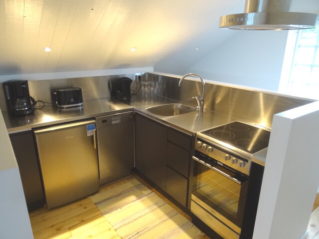 Casa (25 metros cuadrados). Entrada privada, inodoro, cabina de ducha y lavadora. El precio incluye ropa de cama, toallas y limpieza final. Una habitación grande con una cama (140 cm), sofá (que se puede utilizar como cama) y escritorio. NO HAY COCINA, pero hay una nevera pequeña, microondas y hervidor de agua. Como una habitación de hotel, pero más grande. Buenas instalaciones de almacenamiento y secado. Wifi, TV con Apple TV. Parte propia del patio. No se limpia en invierno. Plaza de aparcamiento junto a la casa. Entrada "Trixy" arriba, debido a las condiciones de la carretera.