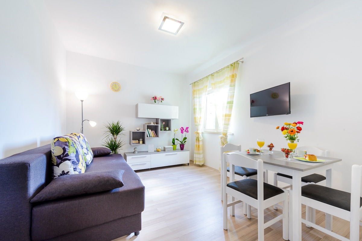 Apartamento moderno, excepcionalmente cómodo y nuevo en un barrio tranquilo con estacionamiento en el garaje de cortesía. Perfecto para familias o viajeros de negocios, está a pocos pasos de restaurantes (Loggia, Mezza Nave, Glorijet), supermercados (Tommy, Ribola), una panadería y los mercados verdes y de pescado. La parada de autobús está a 20 m, ofreciendo un viaje de 5 minutos a la playa de Lapad o un paseo de 15–20 minutos; el casco antiguo está a 7 minutos en autobús o a 20 minutos caminando. Ideal tanto para estancias de placer como de negocios. Estancia perfecta.