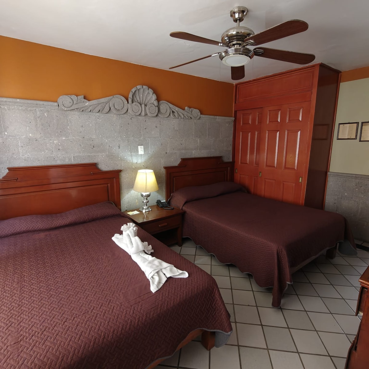 Un Hotel con Historia y Confort, en el Centro Histórico de Guadalajara, disfruta de nuestra habitación Estándar Doble que cuenta con 1 Cama Matrimonial para alojar hasta 2 personas, aire acondicionado, ventilador de techo, TV con canales por cable, Wifi gratis, Estacionamiento con servicio de Valet Parking gratis, ropa de cama y amenidades de baño. Nuestro personal te atenderá con calidez, haciendo que tu estancia sea placentera, conócenos, te encantará!