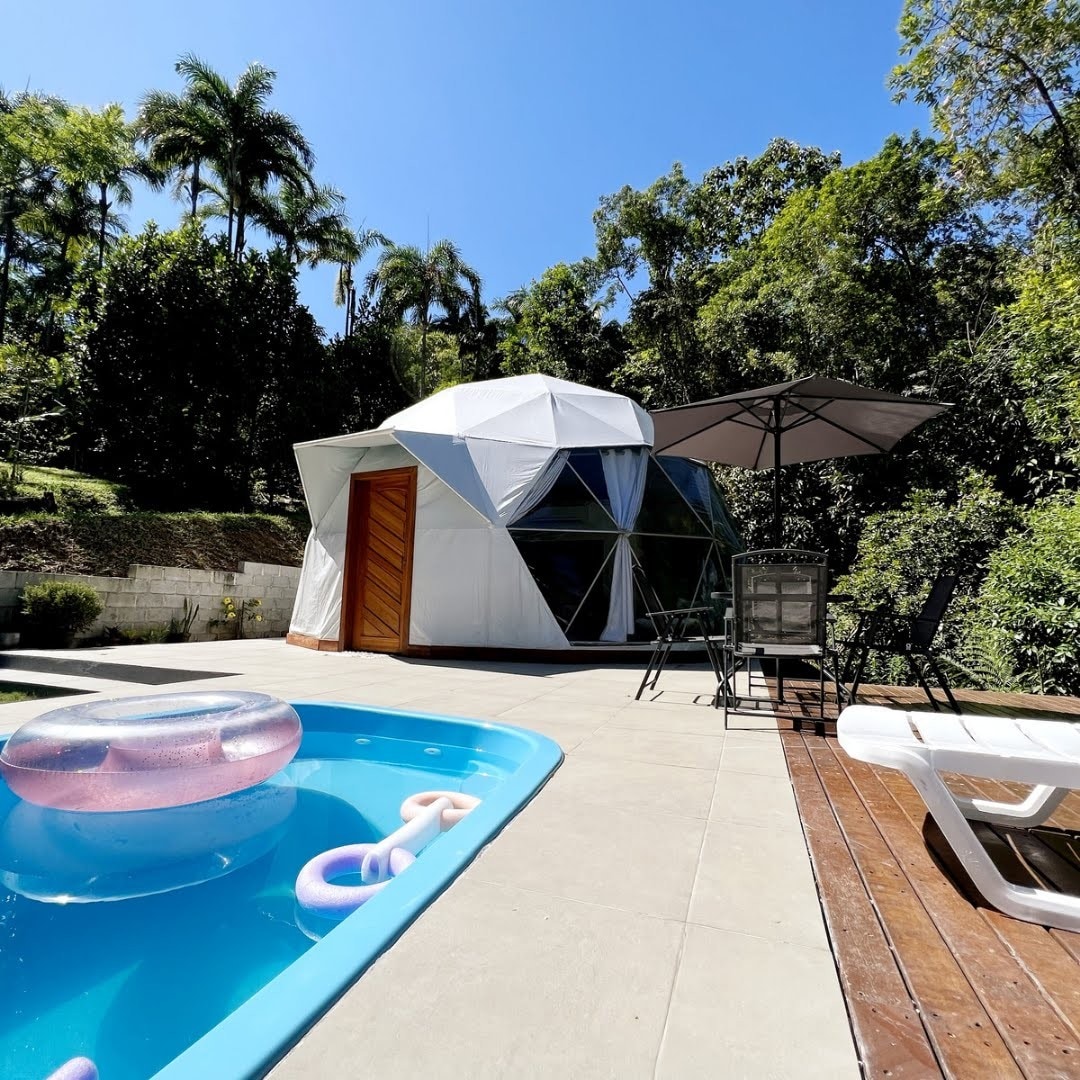 Una burbuja inmersa en el Bosque Atlántico para descansar, disfrutar y contemplar. ¡Refugio privado y exclusivo! Para momentos especiales y románticos de conexión entre la pareja y la naturaleza. Diseño distinguido: ¡Domo Geodesico! ¡A 25 km de las playas de Matinhos! ¡A 2 km de la cascada! Con piscina privada,senderos, bicicletas, hamacas, fogata, televisor inteligente, aire acondicionado. Cesta de bienvenida incluida con artículos para el desayuno. Hora de llegada flexible (previa solicitud). Aceptamos mascotas (no hay cercas).