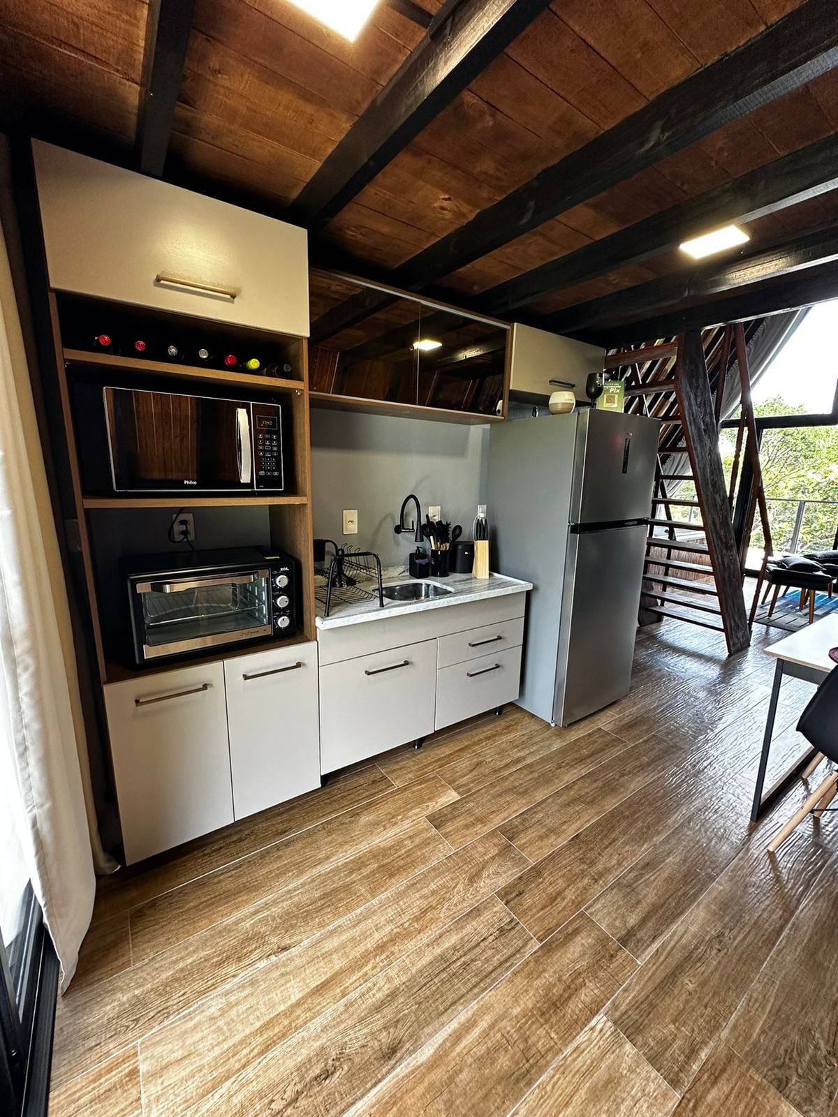 Viva dias únicos em Floripa! 🌴✨ Desfrute de um espaço privativo e aconchegante, perfeito para relaxar. Localizado a 8 min do aeroporto, 15 min do Centro e 9 km da Praia do Campeche. Acomode-se na suíte climatizada, prepare suas refeições na cozinha completa (com forno, micro-ondas e utensílios), desfrute de um delicioso café da manhã e aproveite a área externa exclusiva com spa de hidromassagem aquecido. Conforto, privacidade e praticidade para uma estadia perfeita e ACONCHEGANTE! 🌊✨🏡