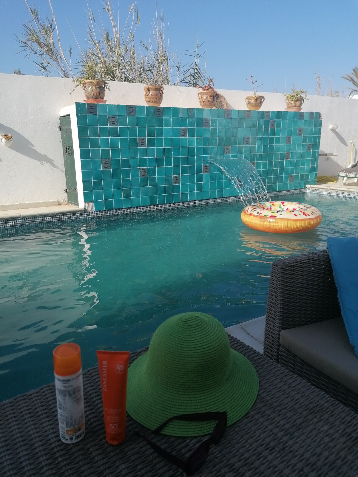 Houch de excepción situado en la calle más encantadora y fotografiada de Erriadh, en el corazón del famoso barrio artístico de Djerbahood. Disfrute de 2 dormitorios con aire acondicionado, un patio luminoso, una piscina privada y una terraza amueblada. Cocina equipada, Wi-Fi rápido, fácil estacionamiento. Ideal para parejas, familias o amigos. Alquiler de automóviles posible y deliciosos platos caseros de Djerba bajo pedido. Un entorno único, tranquilo y auténtico para vivir Djerba.