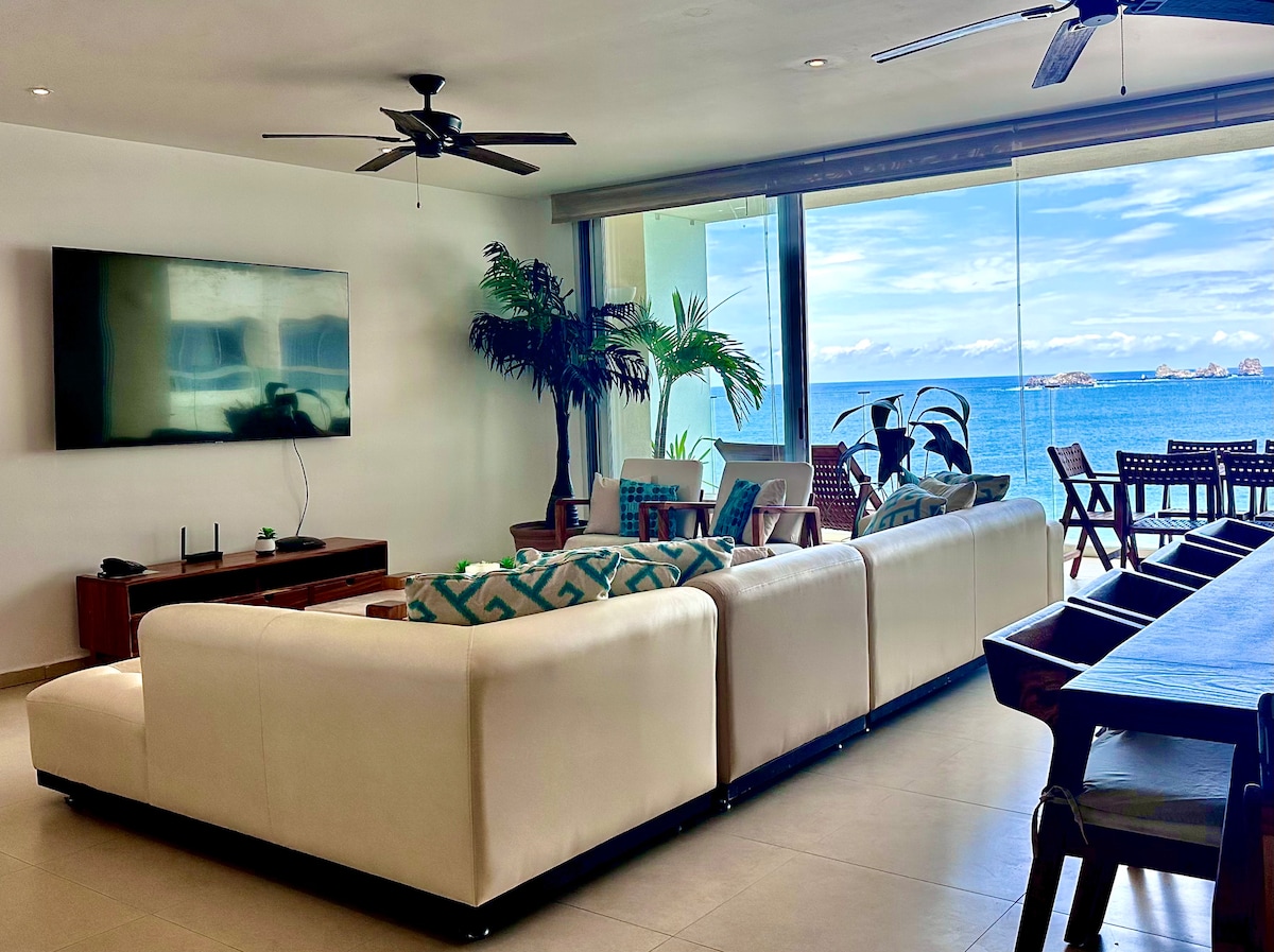 Cuenta con todo lo necesario para que pases unas vacaciones increíbles. La vista al mar es perfecta desde la cocina, desde el comedor, desde la sala, en la recámara principal o en la terraza. La cocina está totalmente equipada por si deseas cocinar con todos los accesorios. El servicio es de primera, los meseros están siempre muy al pendiente por si necesitas botana o una bebida en la alberca. Pueden ir caminando a la zona de restaurantes, a la marina o a las tiendas comerciales.