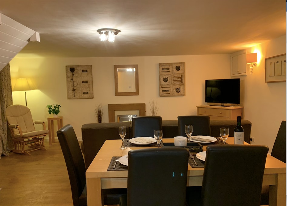 The Turret es un alojamiento peculiar y único. La planta baja de planta abierta tiene hermosas ventanas arqueadas, una cocina tradicional hecha a mano con electrodomésticos modernos, mesa de comedor, un gran sofá de cuero y un televisor LED inteligente. El moderno baño tiene una bañera con ducha y accesorios de calidad. Arriba hay dos dormitorios. El dormitorio principal tiene doble altura y tiene una cama doble estándar de 4 pies y 6 pulgadas de ancho. El segundo dormitorio tiene una cama doble pequeña (4 pies) con una cama/colchón individual plegable adicional.