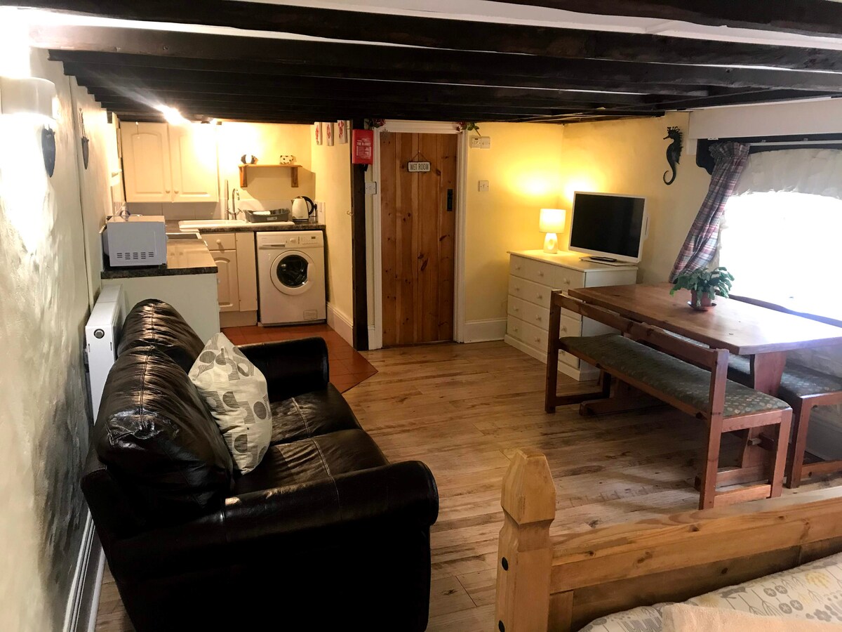 Te alojarás en un hermoso edificio anexo de roble verde con 4 ventanas de dormer y un frontón de vidrio que ofrece encantadoras vistas al campo de Devon. El acceso es a través de una puerta privada en la parte delantera del edificio. Desde la sala de estar de arriba, una puerta conduce a tu propio jardín privado. Hay una zona de terraza con una mesa y sillas para cenar al aire libre y una barbacoa en temporada. Hay un cenador de madera en la parte superior del jardín también con una mesa y asientos para cenar al aire libre con vistas más encantadoras.
